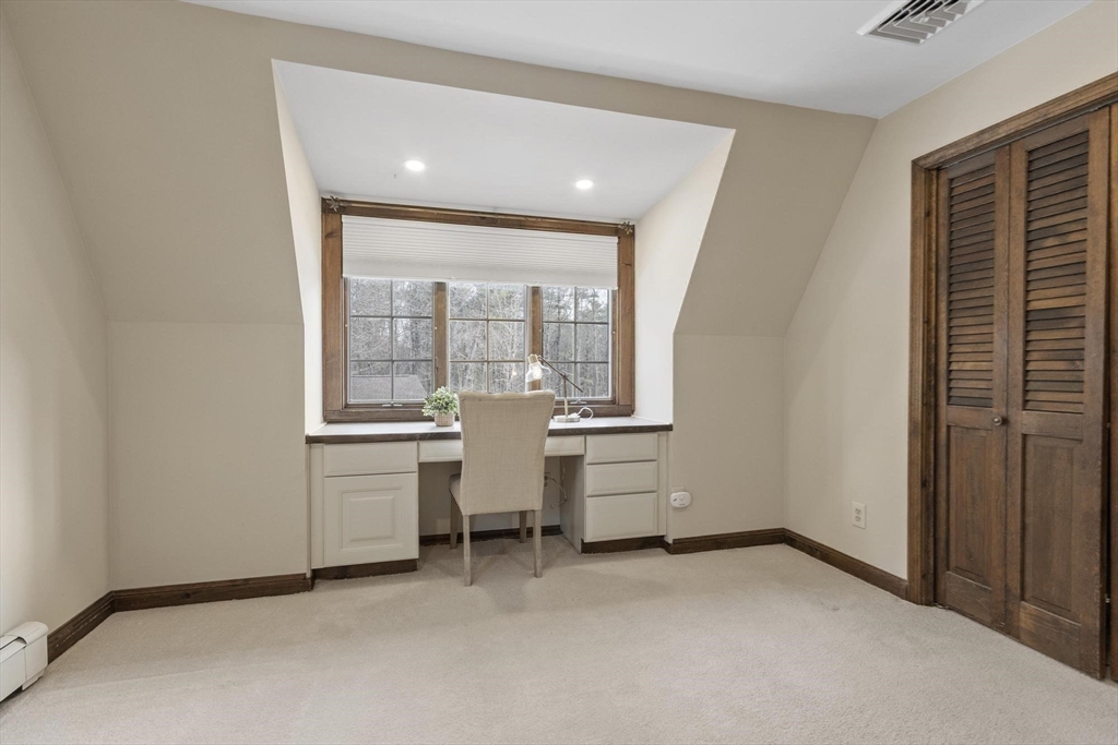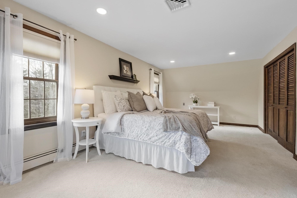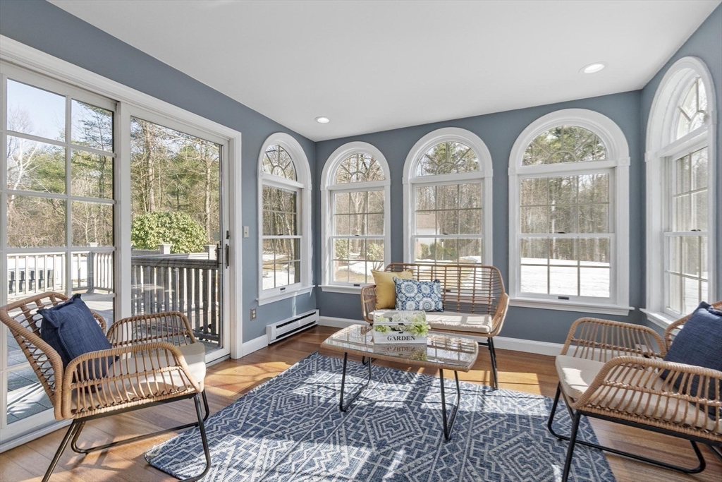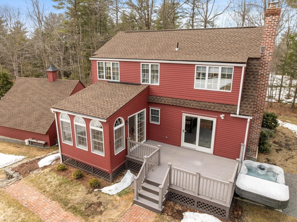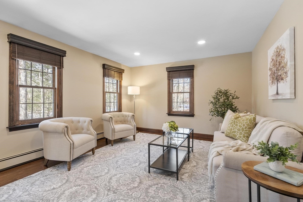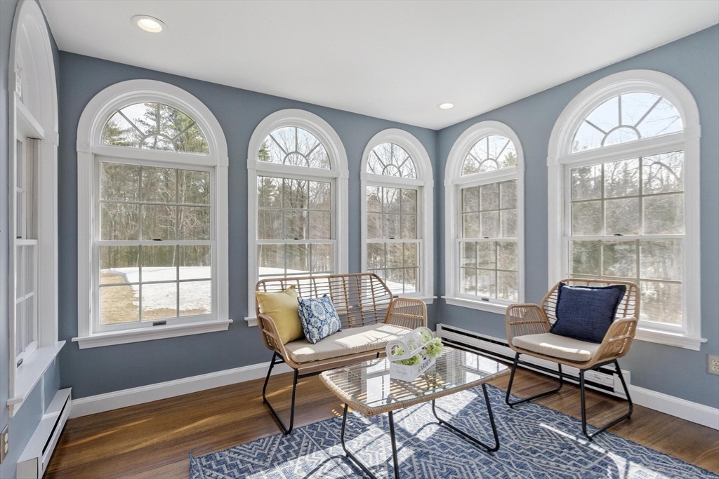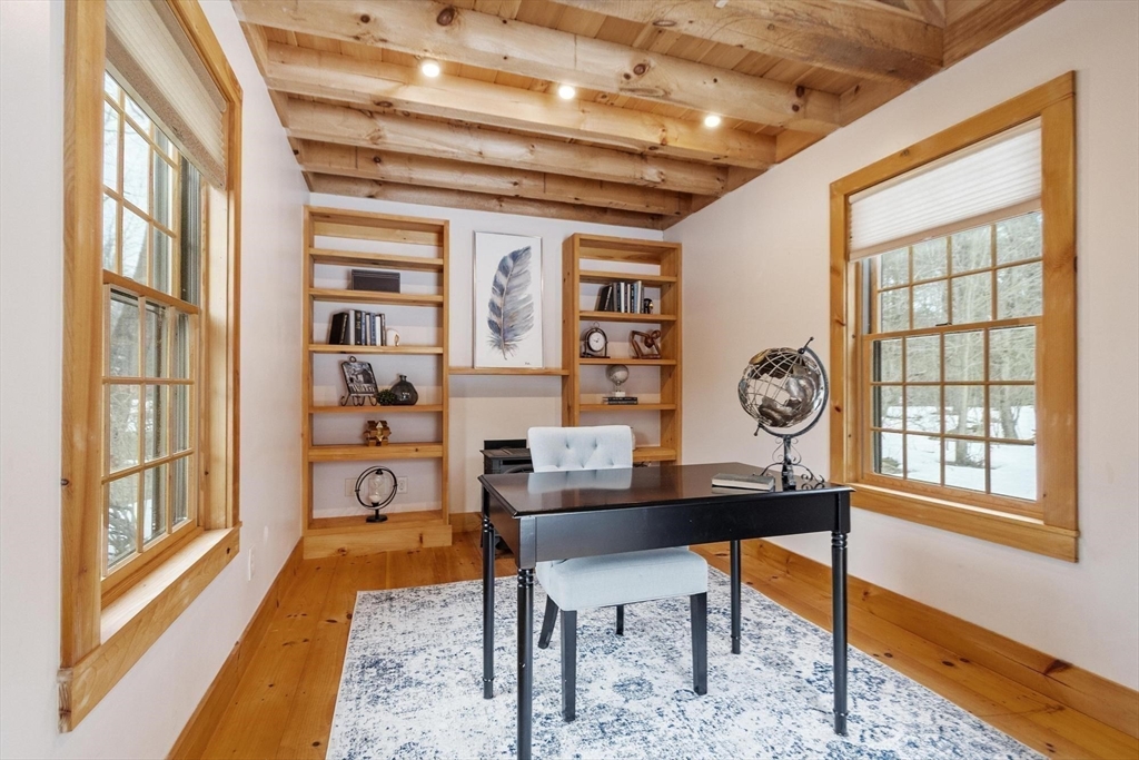 This 3 bedroom home on 2.4 private acres in Westminster has been meticulously cared for — top to bottom, inside and out, over the past 40 years of ownership. House, cabin and garage roofs, and exterior stain are brand new in 2025, with hardwood floors (even under all carpets), central air, updated kitchen (all appliances 2020), with neutral white solid surface countertops, and updated bathrooms. Both the sunroom and the den (which features a cozy fireplace, custom built-in shelving, and sliders) lead to a generous composite deck with hot tub (2021) overlooking a private back yard, built-in firepit, stunning hand-laid stone walls and mature landscaping. Downstairs, a finished basement and dedicated workshop add versatility, while the 2-car garage has excellent storage — with real potential to finish the space above. The 2011 heated studio cabin, built from plans purchased from the Thoreau Society, is a special bonus. This home is truly ready for you. Move in before the tulips come up!