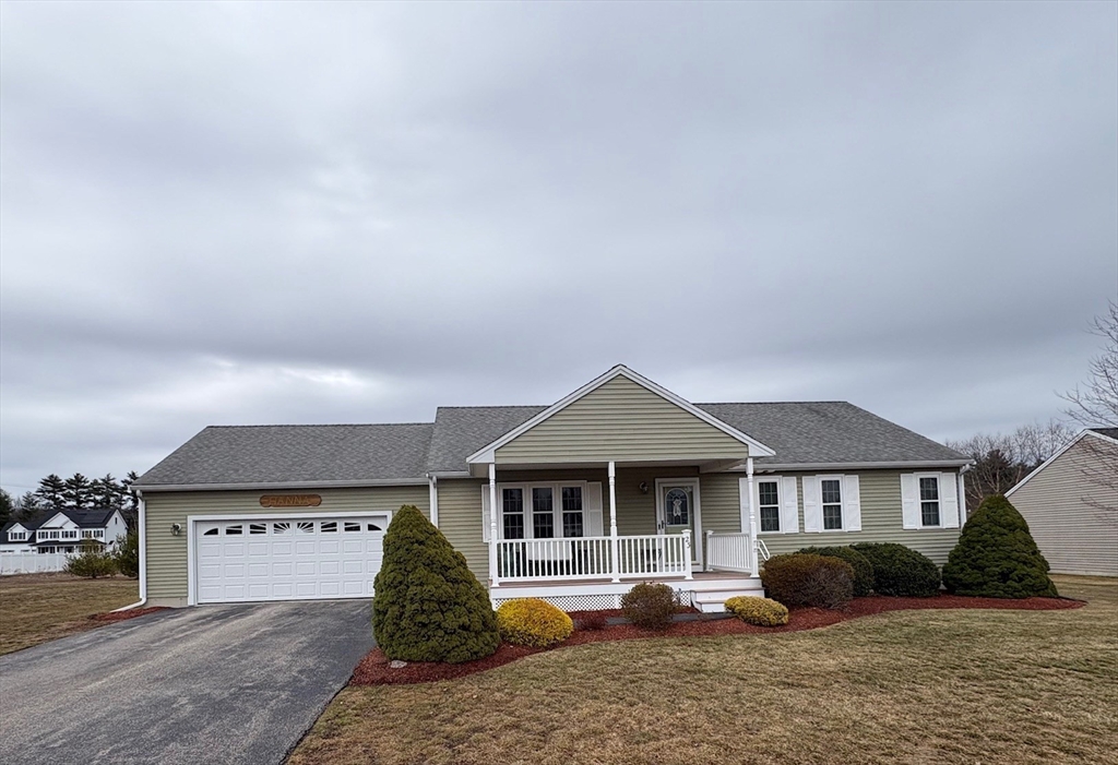 Don't miss this rare opportunity in the highly desirable 55+ community of White Pine Village! This beautiful 2 bedroom, 2 bath ranch style home offers convenient one-level living. The well-designed floor plan includes a cozy living room, spacious kitchen and dining room, sunlit family room with a gas fireplace, a primary bedroom with walk-in shower, abundant closet space, and first floor laundry room. Recent updates include new windows (2025); new air conditioner; quartz countertops (2024), backsplash (2025) and pull out cabinet drawers (2026) in the kitchen; and new wood and laminate floors throughout. The attached 2 car garage has an accessibility ramp to the house and plenty of organized workspace and storage. Enjoy summer evenings on the front porch or the back deck. this is not just a home—it’s an opportunity to enjoy a serene lifestyle in a welcoming and well-cared for community . The low monthly HOA fee includes water, sewer, snow removal, and lawn maintenance.