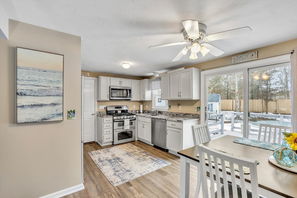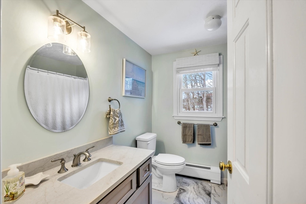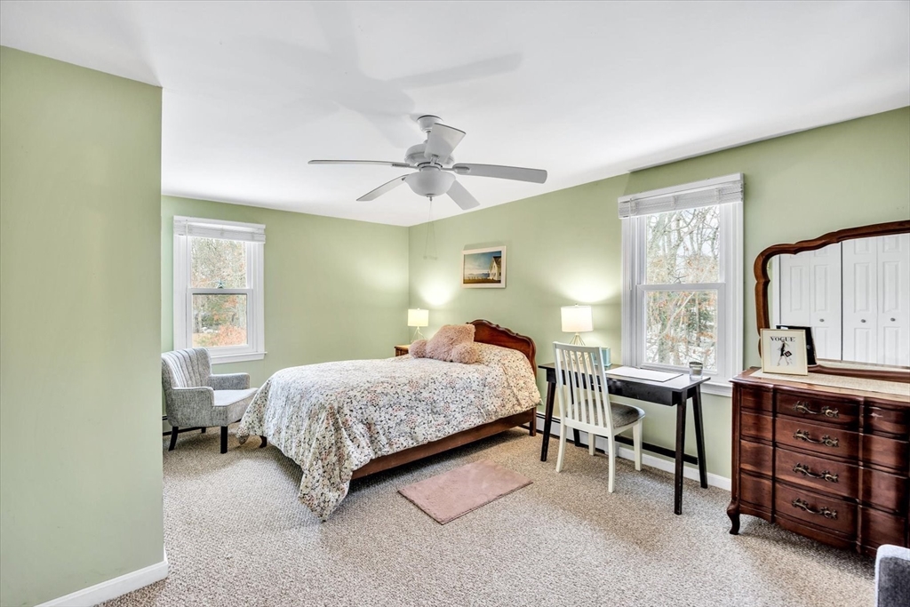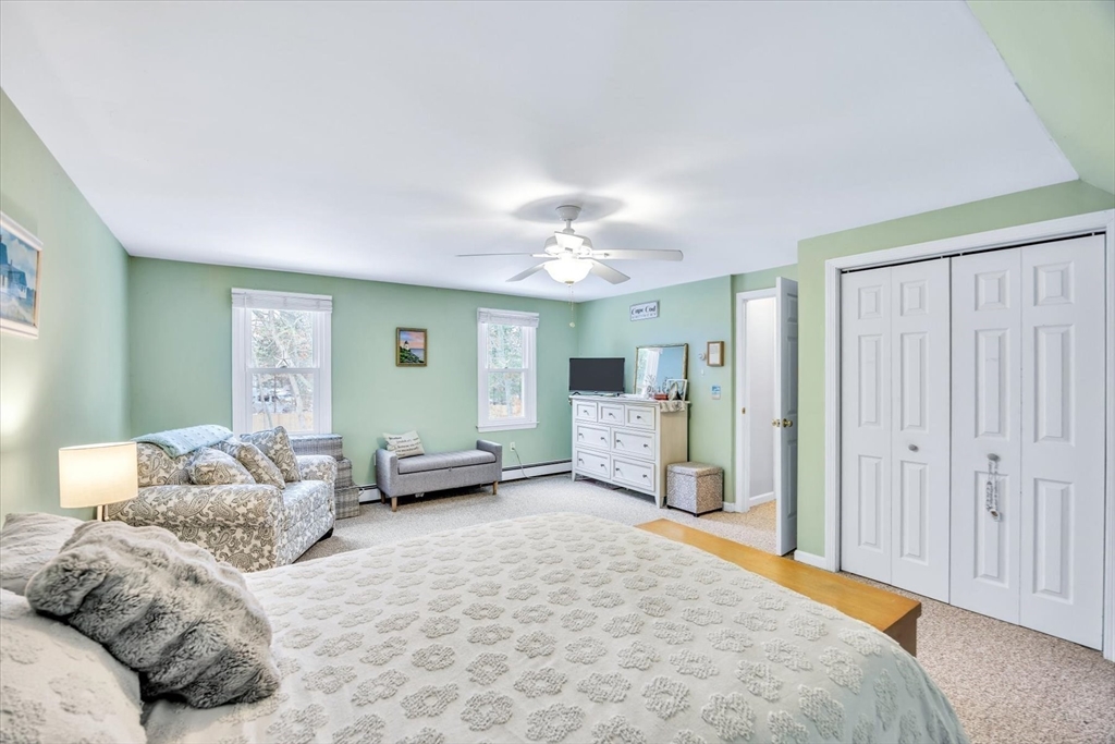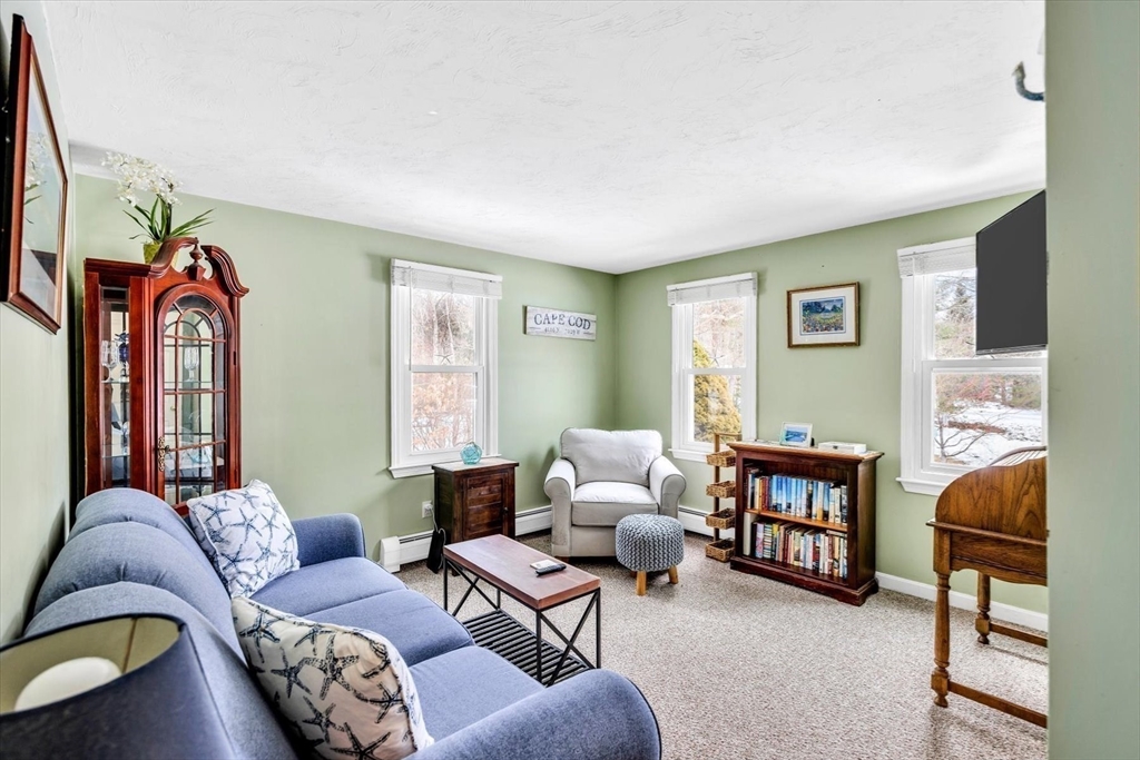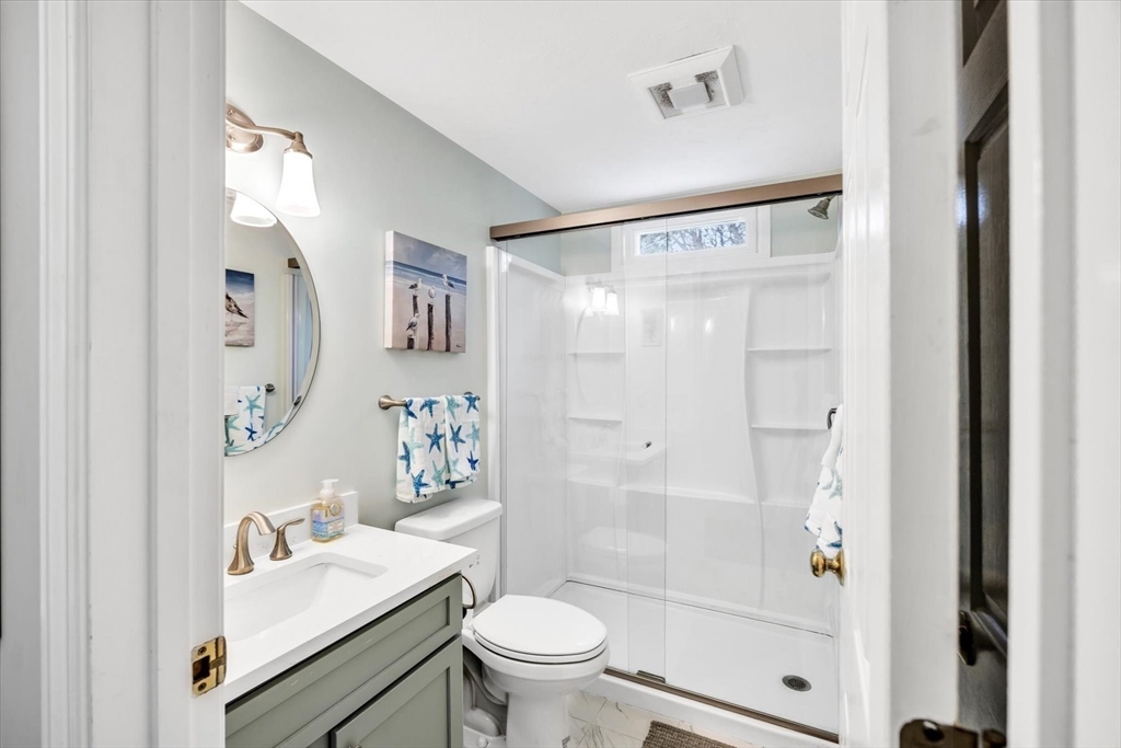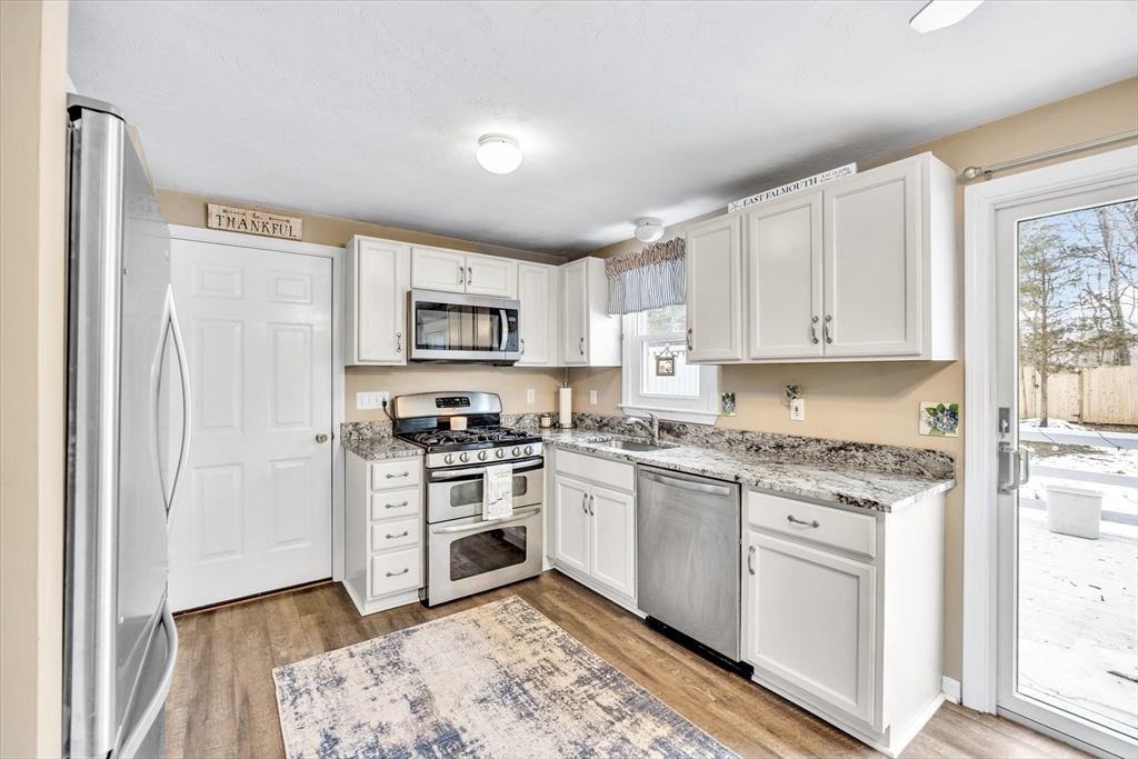 Meticulously maintained and located in highly desirable Waquoit Farms, this Cape style home boasts excellent curb appeal, with mature landscaping and a peaceful, tree-lined street. Tucked away for optimal privacy yet conveniently located close to everything Falmouth has to offer, this turnkey property is light-filled and bright, thanks to updated windows throughout. The first floor features a cozy fireplaced living room, an updated kitchen, a renovated full bathroom, as well as two bedrooms and interior access to the garage. Upstairs, two generous bedrooms and another beautifully remodeled bathroom provide a flexible yet functional layout. Step outside to a fully fenced backyard with a new rear fence, a large deck, outdoor shower, shed AND an enclosed garden area--perfect for relaxing and enjoying your private outdoor oasis. A short stroll away lies Waquoit Bay Reserve, where you can enjoy shell fishing, hiking, and taking in the expansive views and refreshing salt air. Welcome Home!