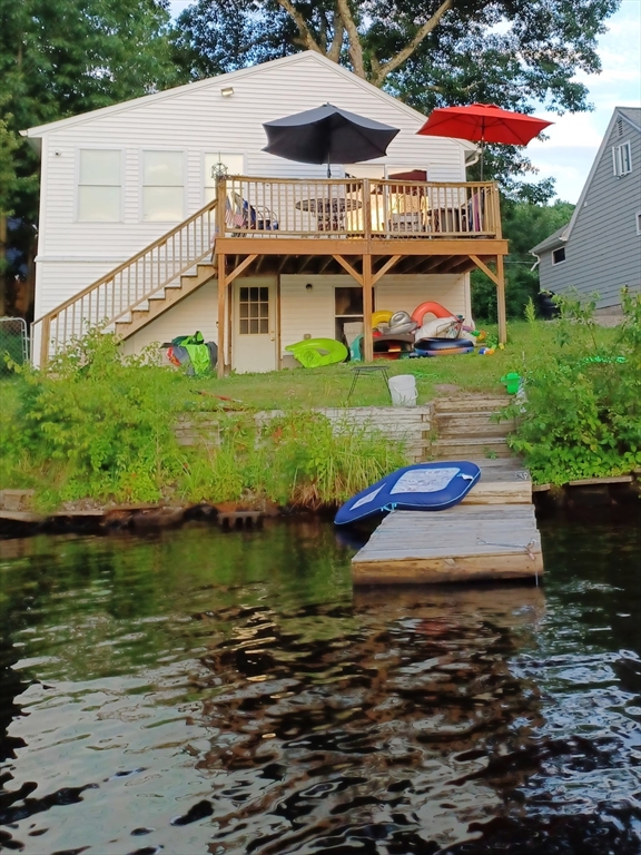 Bring your boat! Welcome to this charming, completely furnished, rehabbed one-level home on Thompson Pond, a full recreational lake! Enjoy the deck, private dock, and beautiful outdoor space perfect for relaxing or entertaining. Inside, the open floor plan features an updated kitchen, expansive dining room, and French doors leading to a step-down living room with sliders to the deck and breathtaking sunset views over the water. Clean, turnkey opportunity!