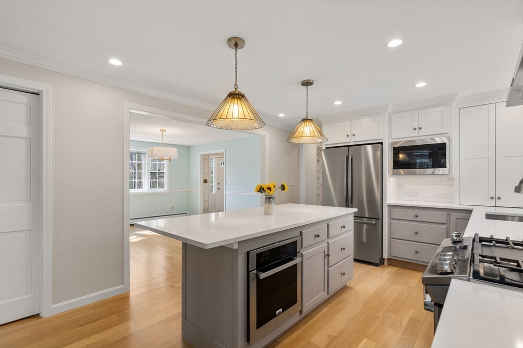 Welcome to this beautifully maintained 4-bedroom, 2.5-bath Colonial located in the highly desirable Martha Jones neighborhood. Set on a generous .95-acre lot, this home offers space, comfort, and abundant natural light throughout. The recently renovated kitchen serves as the heart of the home and features modern finishes, a spacious walk-in pantry, and plenty of room for everyday living and entertaining. Sunlight fills the home’s inviting living spaces, all complemented by hardwood floors throughout. Upstairs you’ll find four generously sized bedrooms, including a primary suite with a private bath. A convenient first-floor laundry room and home office adds to the home’s practical layout. Step outside to enjoy the screened-in porch, deck and fenced-in backyard. Enjoy the unbeatable location with easy access to Route 128, commuter rail stations, and shopping.