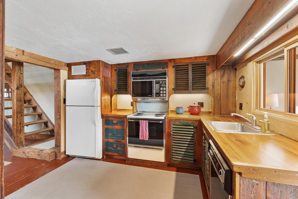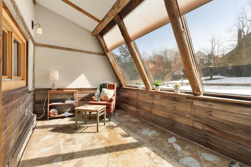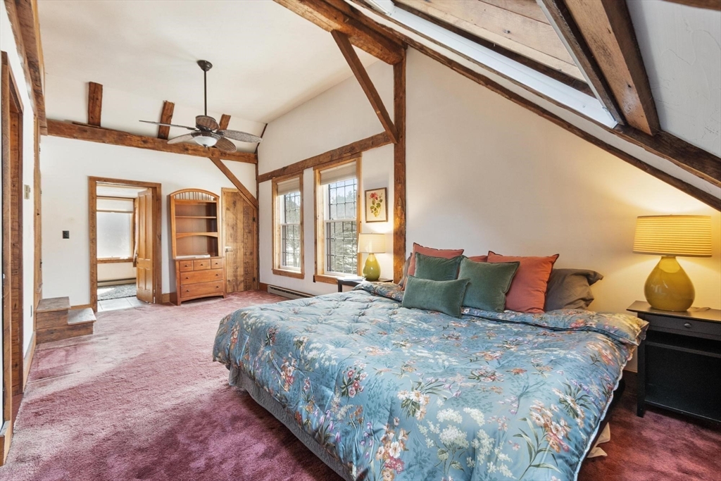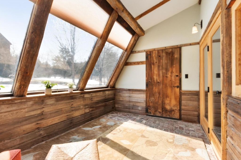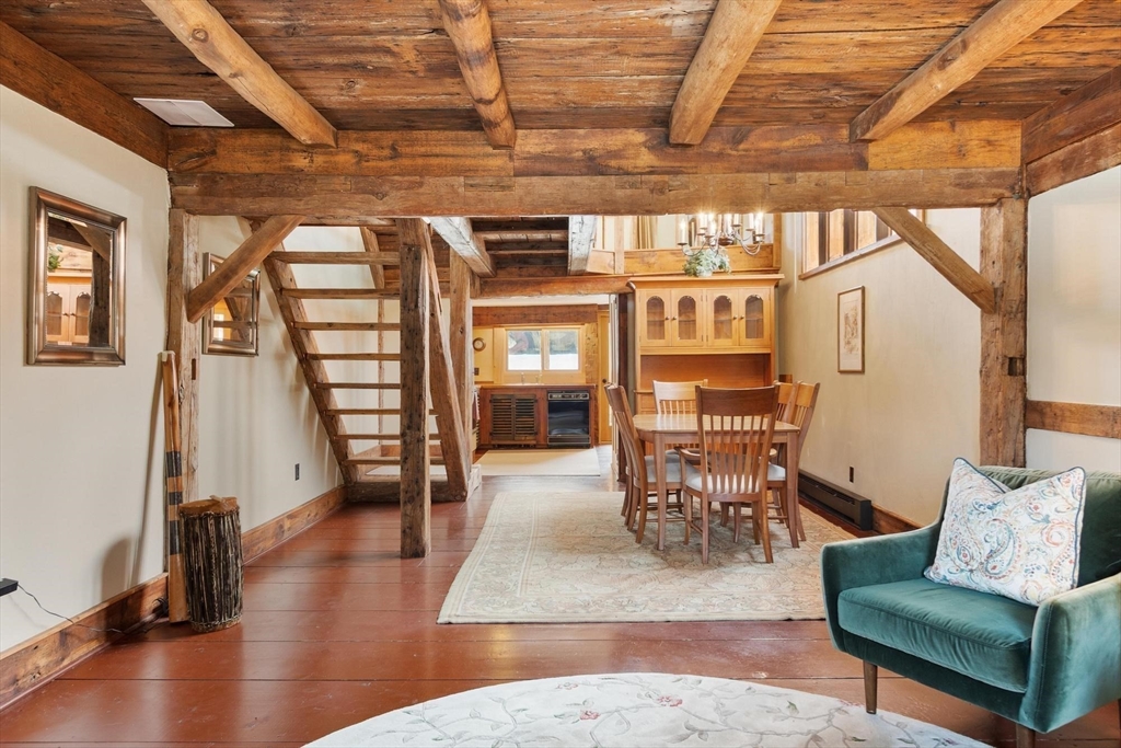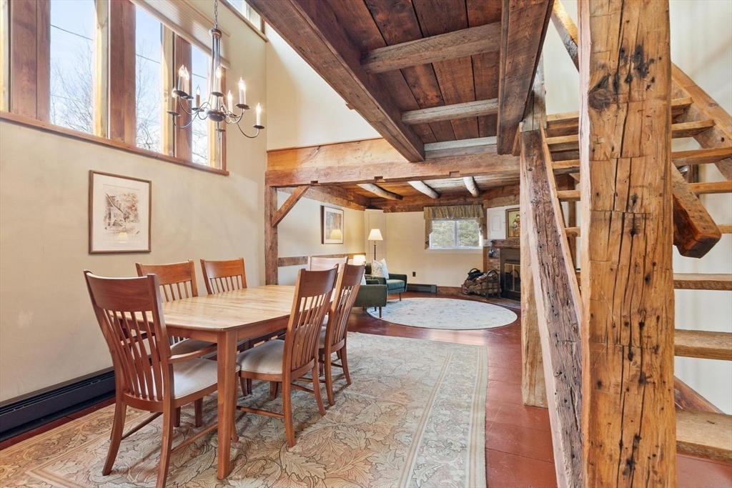Have you been watching Barn Masters and dreaming of living in such a reimagined space? Just a marvel. Unique and interesting with a pond to play in across the street. Keep up your fitness with four levels of living. Each floor is unique and beautiful. Cozy corners, hidden storage in nooks and crannies along with wide open lofted spaces. Sunlight pours in and warms those wood tones throughout. Sunporch with brick floor is a wonderful place to nestle in and read a long book. Priced to allow for your intended updates. Private third floor BR large enough for a sitting area, office corner, AND a king sized bed! Country living with condo convenience.