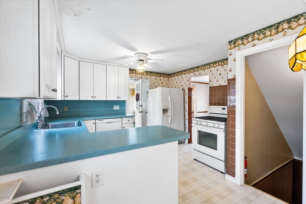Welcome to this well maintained 3-bedroom, 1½-bath home located in a highly sought-after neighborhood. Set on a lovely lot with well water, the spacious yard offers the perfect setting for relaxing, entertaining, or gardening.The home features a one-car garage and a paved driveway for added convenience. Inside, you’re welcomed by a sun-drenched enclosed porch, along with a half bath, kitchen, dining room, and a generous front-to-back fire placed living room on the main level. Hardwood floors lie beneath the carpeting, offering exciting potential for enhancement. Upstairs, you’ll find three comfortable bedrooms and a full bath. The basement provides abundant additional space for storage, recreation, and a workshop.Ready for your fresh ideas, personal touches and updates, this home offers tremendous potential in a fantastic location. Conveniently close to shops, dining, and major routes, this is an opportunity you won’t want to miss. Reach out before it is too late!