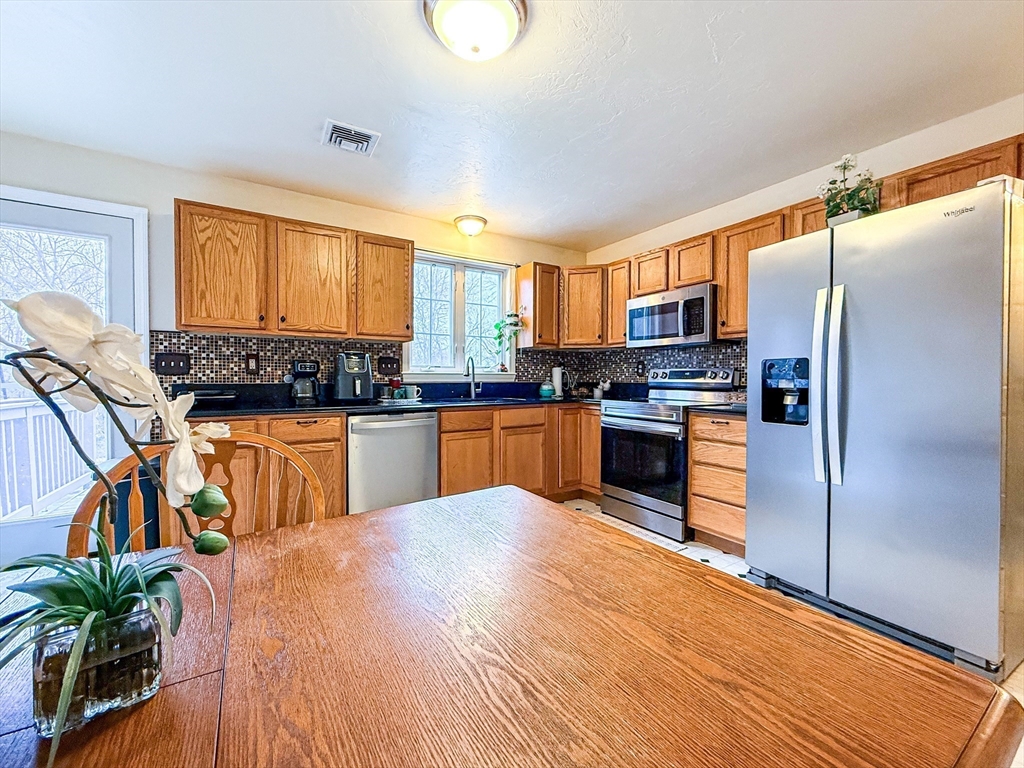 This townhouse is ready for you to move right in. With 3 levels of finished space, this home provides plenty of opportunity to spread out! The main level offers a spacious living room with a picture window, and a large eat-in kitchen with quartz counters, plenty of cabinet space, and new stainless steel appliances.. There is also a half bath on this level. The second floor has 3 spacious bedrooms with ample closet space and an updated full bath with tiled backsplash. The finished lower level has a family room, half bath, laundry area and a separate entrance. Expand your entertaining space out onto the deck which is directly off the kitchen. Come check out this beautiful home!Condo fee,406.00 if pay early 381.00.