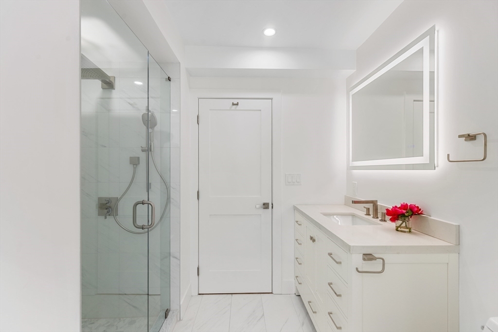 Rare opportunity to own a completely gut-renovated townhome ideally located between Belmont’s vibrant Waverley and Cushing Squares. Enjoy walkable access to popular restaurants, parks, and convenient bus routes to Harvard Square and Boston. This beautifully designed home offers 4 bedrooms and 3.5 bathrooms across four spacious levels. The sun-filled main floor features an open-concept living and dining area that flows seamlessly into a chef’s kitchen with custom white shaker cabinetry, quartz countertops, and an island perfect for entertaining. High ceilings, oversized windows, and modern finishes create a bright and welcoming feel throughout. Additional highlights include a lower level with outdoor access, ideal for a home office, potential rental/in-law space, and a spacious second-floor roof deck—an outdoor retreat perfect for relaxing. Located in Belmont’s top-rated school district, this home offers contemporary design and exceptional convenience in a highly desirable neighborhood.