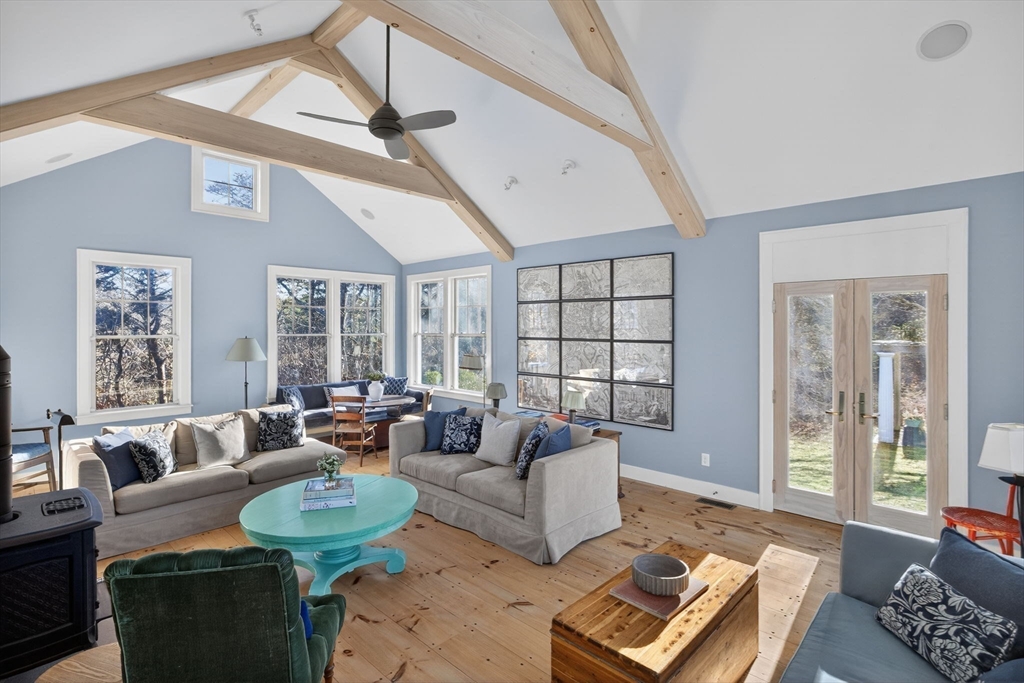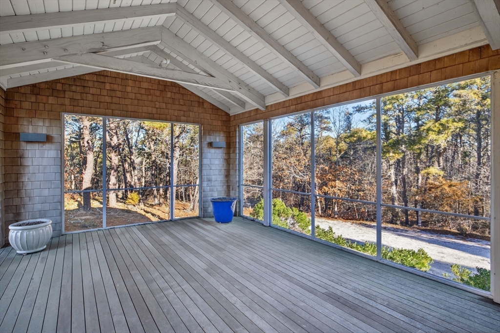 Privately set at the end of a quiet lane in South Truro, this custom architect-designed home offers space, privacy, and easy access to Fisher Beach. Completely remodeled in 2009, it features modern construction and updated mechanical systems throughout. The layout provides bright, comfortable living spaces ideal for both entertaining and quiet retreats. The main level includes a spacious living room with a Hearthstone wood stove, dining area suited for gatherings, and a light-filled kitchen with Viking range, and Thermador wall ovens and induction burner. A comfortable family room opens to the large screened porch extending the living space outdoors Four well-separated ensuite bedrooms provide privacy for family and guests, with one on the main level, two upstairs, and one on the lower level. Additional features include central air conditioning, passive solar hot water with Rinnai on-demand backup, and an outdoor shower. Well suited for both year-round living and seasonal enjoyment!