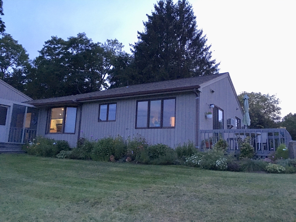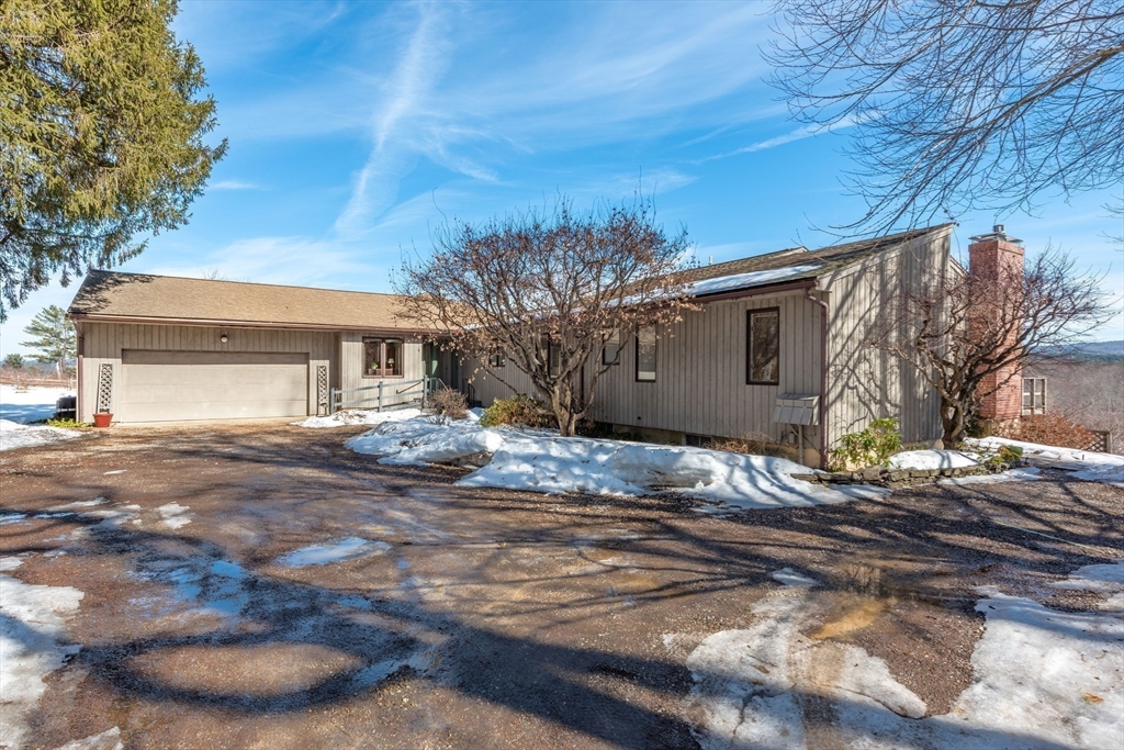 Exclusive multi-generational property with sweeping views on 16.6 acres in South Amherst. This sunlit home offers privacy, perennials, and a rare connection to protected land. 14.6 acres are conserved through Kestrel Land Trust. This home offers flexible living spaces ideal for extended families and rental opportunities.. The main residence features open-concept layout w/ eat-in kitchen, dining area, living room that opens to a deck, 2 bedrooms, office/3rd bedroom, full bath. Refinished floors. The lower level includes family room, bedroom, bath, storage. A foyer connects to a private handicapped accessible one-bdrm apartment (built 1988), w/ kitchen, full bath, laundry, side deck. Set back from the road for exceptional privacy, the property still offers convenient access to local amenities. Bring your vision to make this special property your own while enjoying a setting that is simply unmatched. A rare opportunity to own a legacy property in one of Amherst’s most scenic locations.