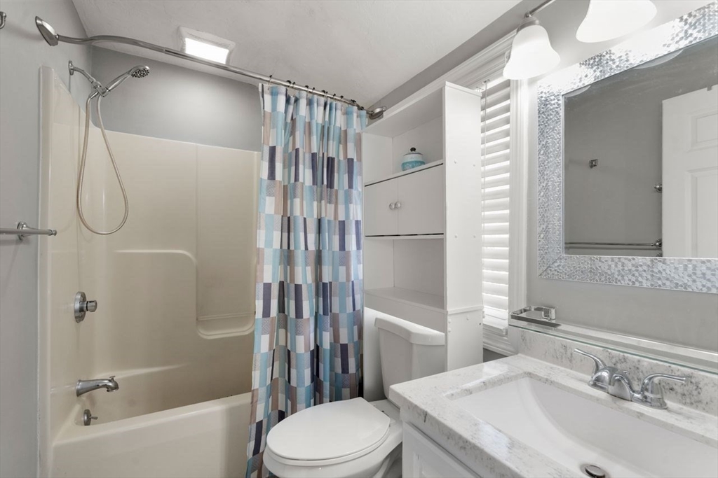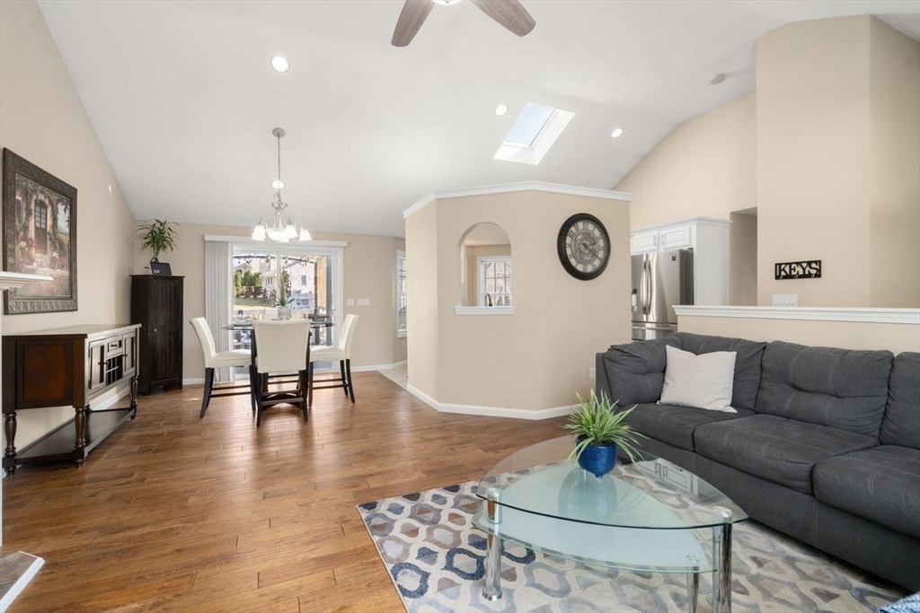 Welcome to this contemporary split-style home offering 3 bedrooms and 3 bathrooms, this home blends modern design with comfortable living. The upper level features a bright, open-concept living room–dining combination with high ceilings, a gas fireplace, and a sliding door leading to a private deck. The kitchen has granite countertops, ample cabinetry and a skylight that fills the space with natural light. The primary suite boasts high ceilings and a full bath, while two additional bedrooms complete this level. The lower level expands the living space with a generous bonus room offering versatile options for a family room, home office, or guest space, along with a combined full bath and laundry area, direct access to the two-car garage, and central air conditioning for added comfort.