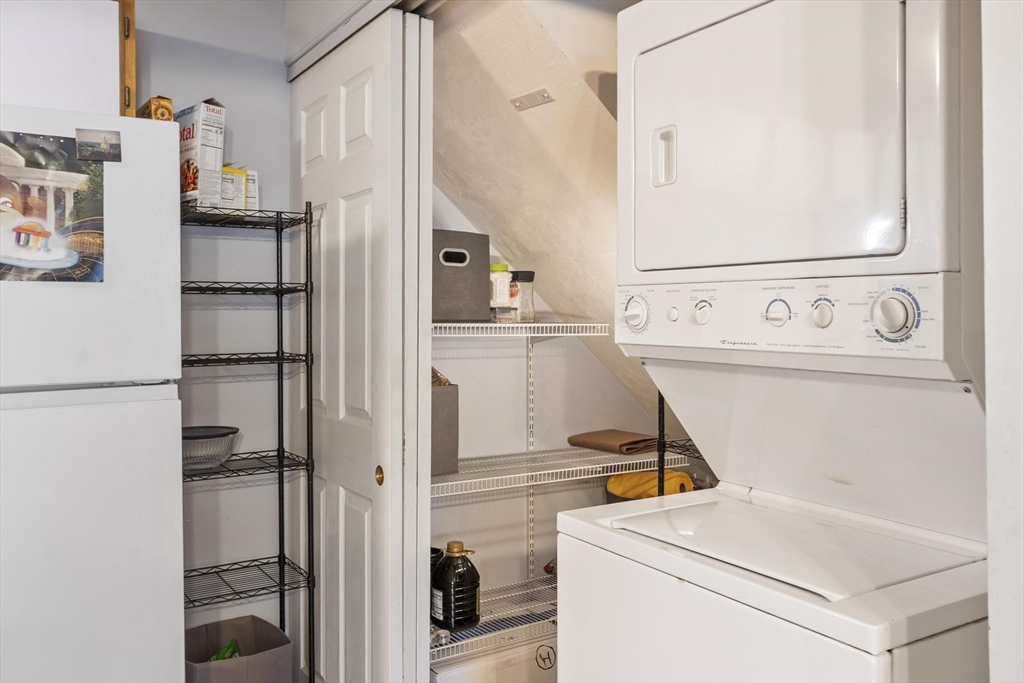 Bright and sunny 2-bedroom, 1-bath townhouse at The Courtyard! The first floor features hardwood floors, a kitchen with pantry for added storage and a stackable washer and dryer, a French door that opens to your porch—perfect for relaxing outdoors or having your morning coffee. The second level offers two bedrooms with carpeting, including a primary bedroom with a walk-in closet, along with a full bath and attic access providing additional storage. Recent updates include a brand-new hot water heater. Enjoy gas heat, central A/C, a designated parking space (#10), and plenty of visitor parking. This unit also comes with an enormous storage area (approx. 300 sf). This well-maintained complex offers great amenities including a pool, clubhouse, fitness center. Conveniently located close to shopping, dining, and major routes.