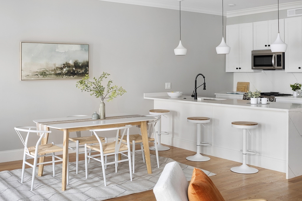 Penthouse unit available now! This stunning 2-bedroom, 2-bath residence features a private furnished rooftop with sweeping city skyline views and dedicated parking. Built in 2021, the building offers modern design and contemporary finishes throughout. The unit includes stainless steel appliances, in-unit washer and dryer, a cozy fireplace, and oversized closets with ample storage. Conveniently located near the Orient Heights T stop with easy highway access, this home combines luxury, comfort, and accessibility. Photos are of a similar unit.