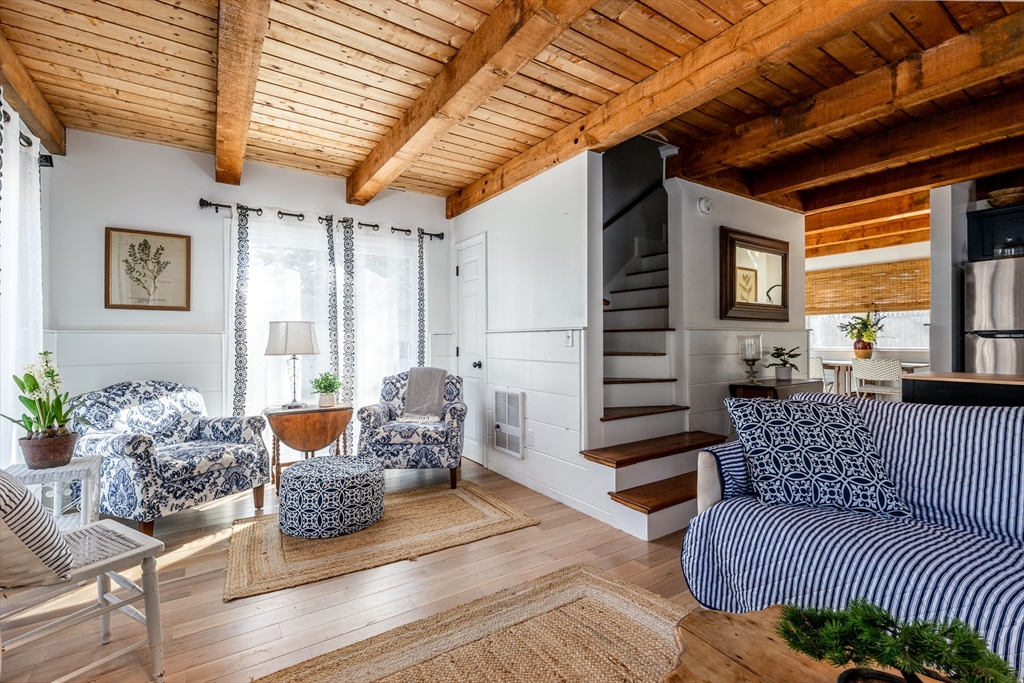 Charming & updated 2 bedroom 1 bath year round freestanding condo in the heart of West Harwich. Nestled in a quiet, yet centrally located neighborhood close to beaches, conservation land, Cape Cod Rail Trail, restaurants & shopping! This gambrel has great curb appeal with new siding & a beautiful composite wrap around deck. Step inside & feel instantly at home. This inviting Cape Cod retreat has been thoughtfully updated so you can simply move in & enjoy. A brand-new kitchen, new appliances, flooring, windows, & sliding doors are just the beginning—there are too many upgrades to list. New recessed lighting brightens the beautifully decorated interior, while the exposed beams on the first floor add classic Cape Cod charm & character. Second floor boasts 2 large bedrooms, the primary has a slider to its own balcony. With excellent rental history & glowing guest reviews, it’s perfect as a primary home, vacation escape, or investment property. Furnishings negotiable. A must see!