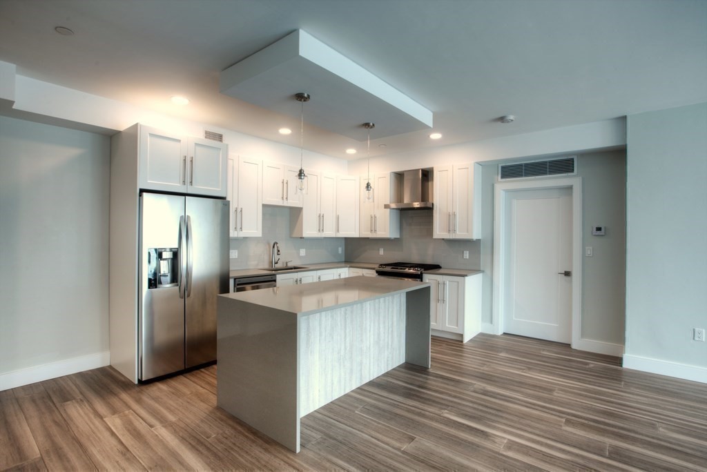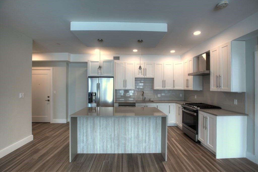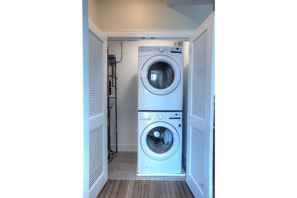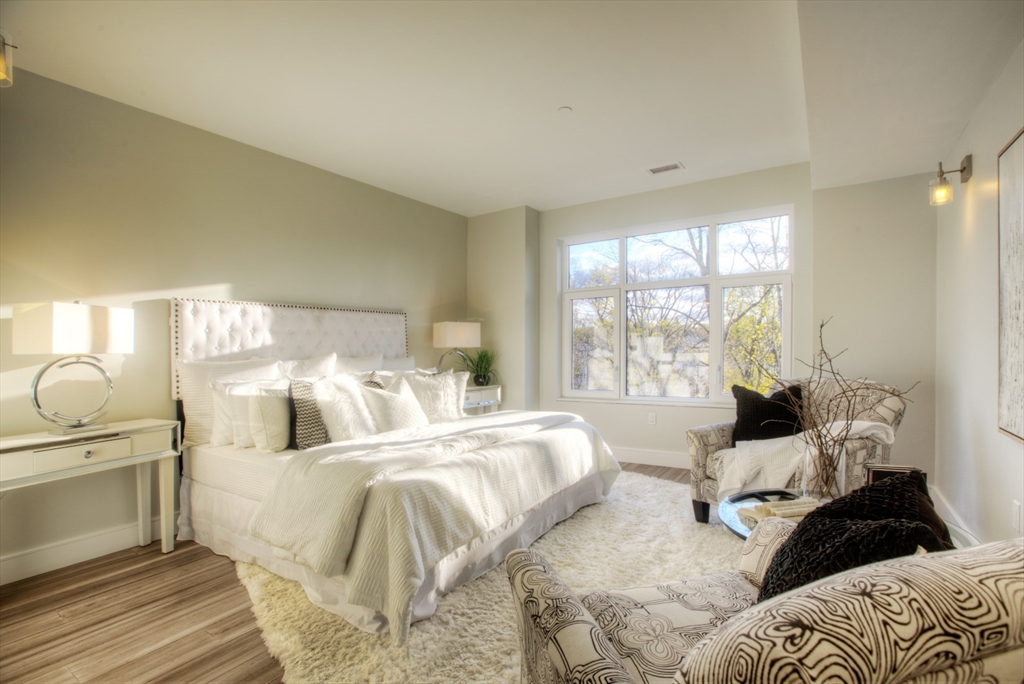 Experience luxury living in Marlborough’s most exciting condo! Just a 5-min walk to downtown, across from the Rail Trail & 1.3 miles to I-495. This rarely available, boutique-quality unit is in an elegant, meticulously maintained, and architecturally distinctive building with upscale, contemporary amenities in a beautiful, park-like setting. Enjoy single-level living with 2 beds, 2 full baths, 9' ceilings, wide bamboo floors, shaker cabinets, quartz counters, SS appliances, vented gas stove, in-unit laundry & custom walk-in closets. Spa-like baths with tile & modern vanities. Elevator access, heated driveway, garage parking, extra storage, efficient HVAC, Euro windows, fiber optic TV/Internet, CAT6 jacks. Fully fire-protected. Amenities include a stylish Community Room with bath, a rooftop deck, beautifully landscaped grounds, stone walls, and a resort-style atmosphere throughout.