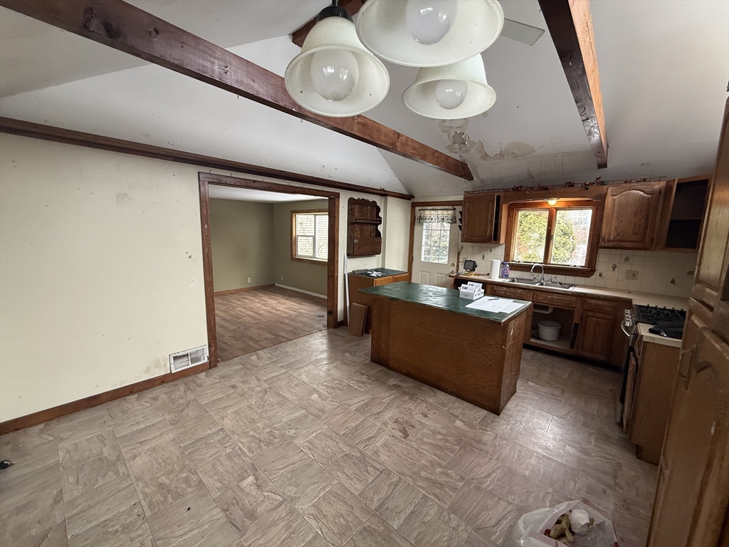 Opportunity knocking! This 2-bedroom, 1-bath home offers 1,380 square feet of living space and plenty of potential for the buyer with vision. While the property requires a complete interior and exterior rehab, the layout and square footage provide a fantastic starting point for your next project. Inside, you'll find a spacious eat in kitchen, dining area and fireplace living room ready to be brought back to life, along with two bonus rooms located off the bedrooms, offering flexible space that could be reimagined in a variety of ways. The home also features a full basement with both interior access and a bulkhead, providing additional storage or workspace potential. If you're ready to roll up your sleeves and unlock the potential, this could be the opportunity you've been waiting for. Bring your vision and make it your own! Buyer and Buyer agents to verify all information contained herein. Passing Title V septic. Broker/owner.