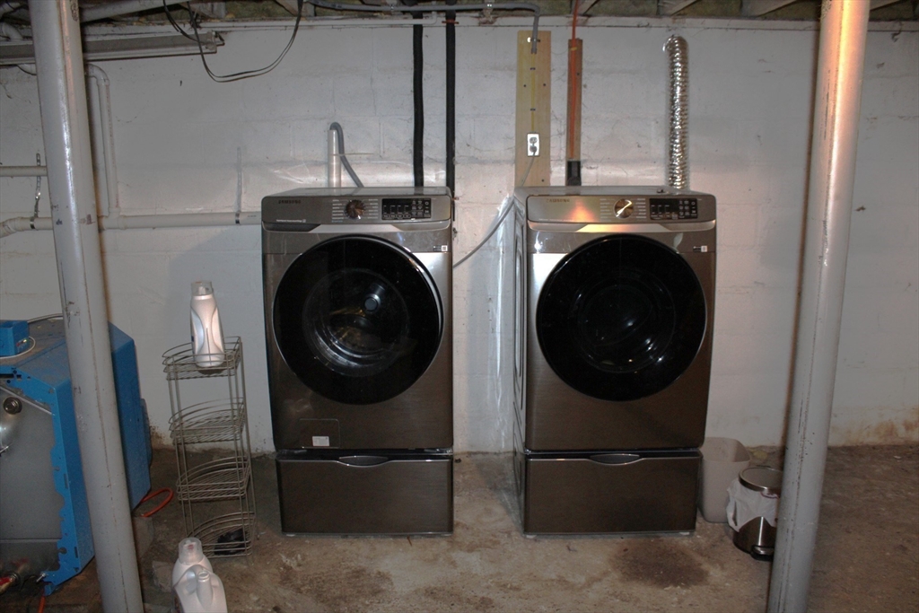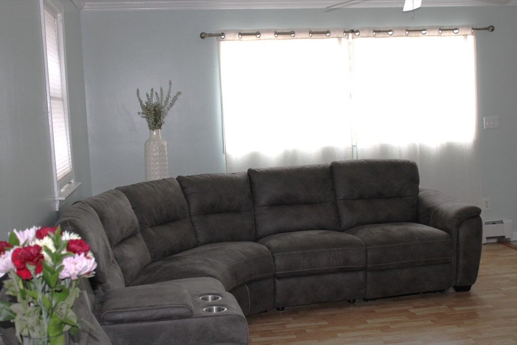 At the end of a tree-lined cul-de-sac, this beautifully maintained home blends classic charm with modern updates. The spacious living area features a front-to-back living room with large bay windows that flood the space with natural light. Notable details include crown molding and recessed lighting. The U-shaped kitchen boasts granite countertops, a tile backsplash, stainless steel appliances, and spacious cabinetry. It connects seamlessly to a formal dining room. The second level includes an expansive front-to-back primary bedroom that includes two double closets. The home includes an updated full bath on the main level. The second-level Jack and Jill style bathroom is accessible from both the primary bedroom and the hallway and features a stand-up tiled shower. Other updates include stainless washer & dryer, new oil tank, updated electric panel, gutters with leaf shield and a new sliding back door.