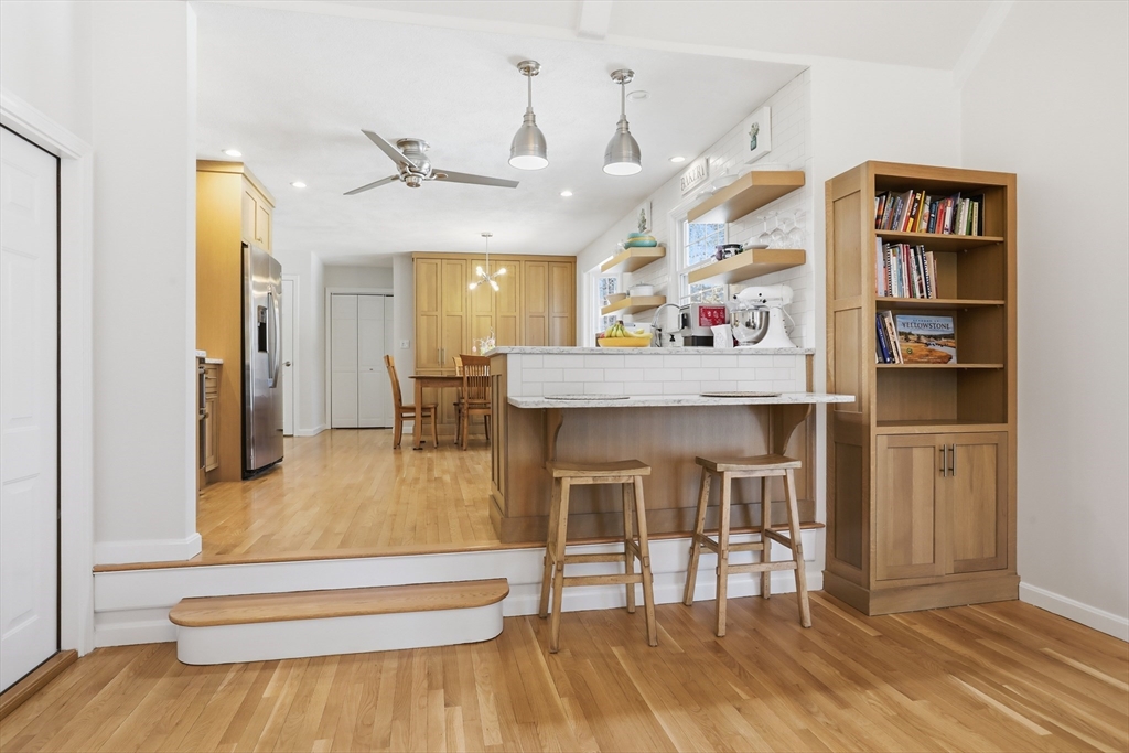 Welcome to this beautifully maintained 4-bedroom, 2.5-bath home nestled on a quiet cul-de-sac near Phillips Academy and downtown Andover. Thoughtfully updated throughout, the home features white oak hardwood floors, a remodeled kitchen and bathrooms, and a spacious bonus room perfect for relaxing or entertaining. Additional highlights include a two-car garage equipped with a Level 2 EV charger. Step outside to enjoy a private, fully fenced wooded backyard featuring a patio with a built-in fireplace and a deck overlooking wooded conservation, ideal for outdoor dining, gatherings, or quiet evenings. The patio connects to a walkout unfinished basement which offers excellent potential for future expansion. Located just off Route 28, this property provides convenient access to Andover’s vibrant downtown with its charming shops, restaurants, and local amenities. A rare opportunity to enjoy space, privacy, and convenience in one exceptional Andover home.
