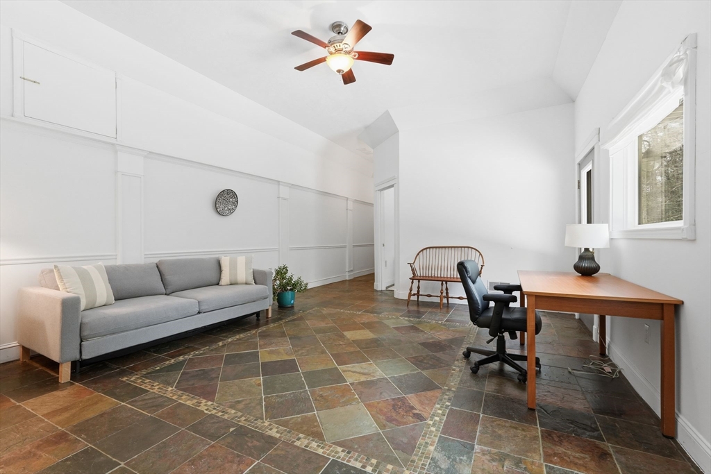 Experience the perfect blend of sophisticated design and natural beauty, this sprawling ranch offers a lifestyle defined by peace and privacy. The open concept floor-plan combines a space perfect for entertaining and seamless daily living. This home has so much to offer, including a beautiful brick fireplace with wood insert, updated quartz countertops and newly refinished floors. Oversized windows flood the home with natural light, blurring the line between the refined interior and the lush outdoors.The versatile layout includes a dedicated space for a home office or studio. Overlook a majestic backdrop of mature woods, offering a vibrant changing palette throughout the seasons. Relax from your deck enjoying the soothing sounds of the Amethyst brook that meanders through the property. Explore trails perfect for morning hikes, birdwatching or just finding a quiet moment.This house is truly special!