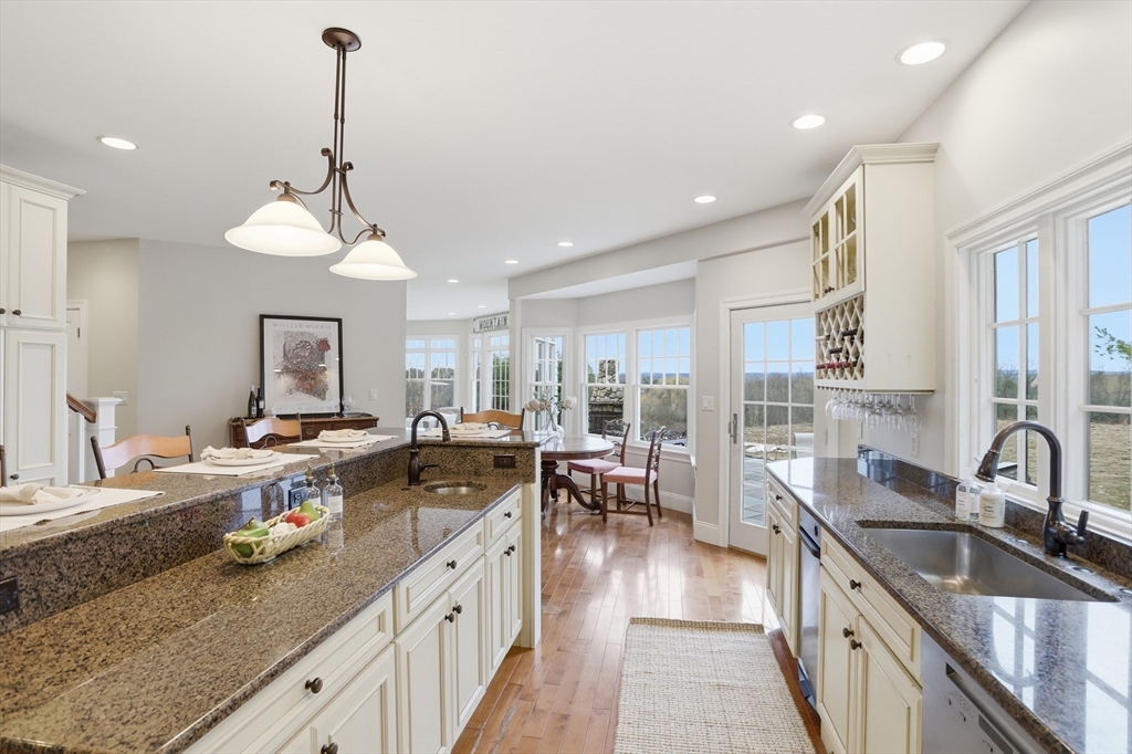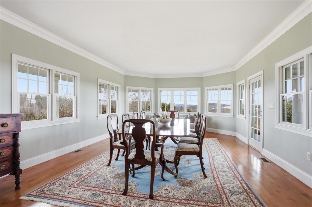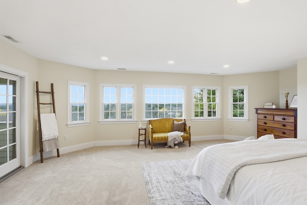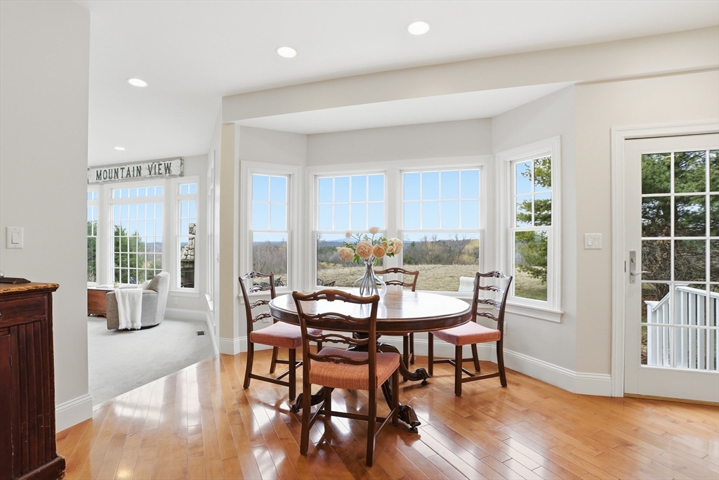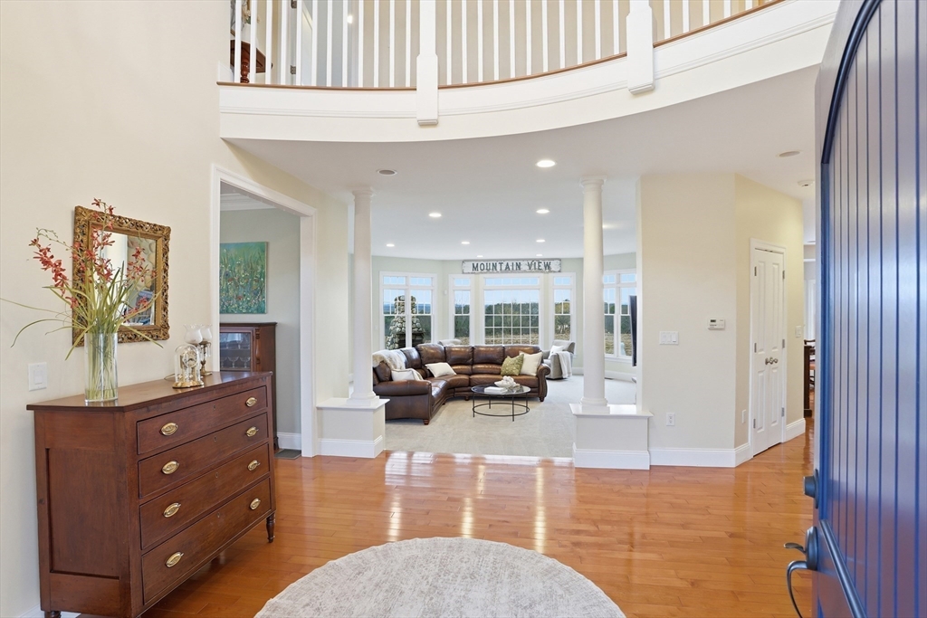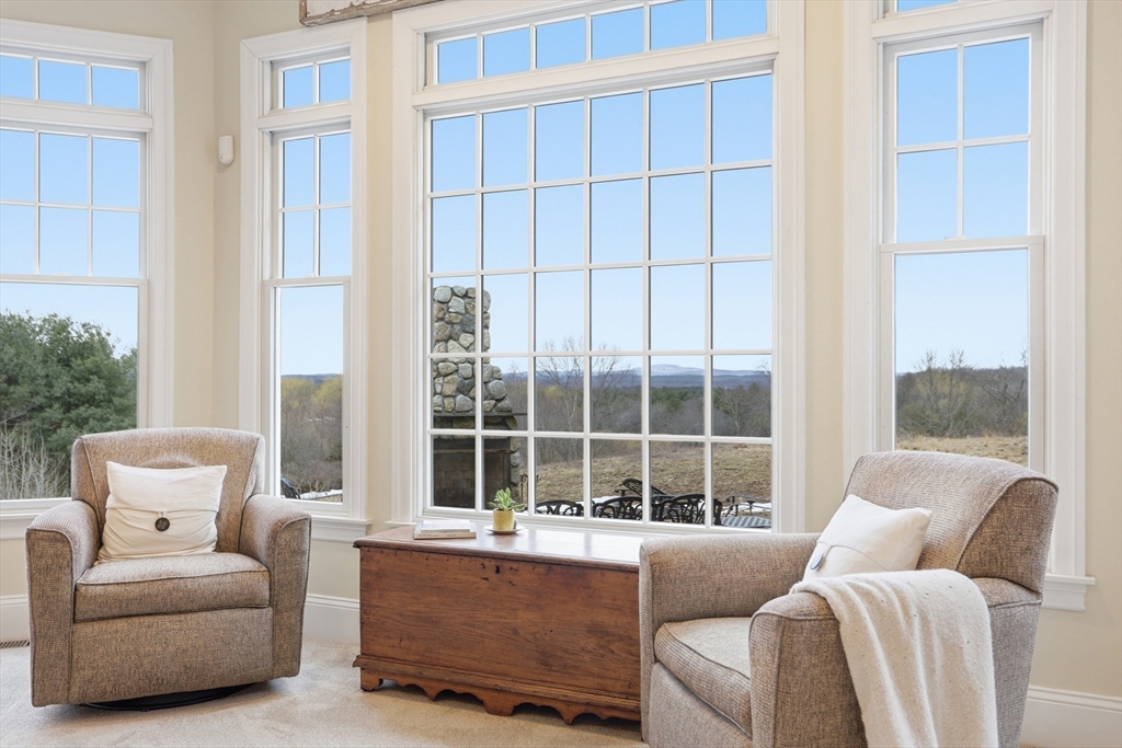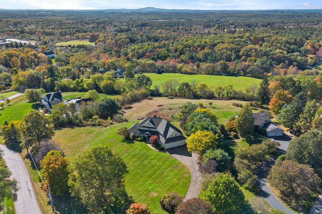 Rare opportunity to own a custom executive Colonial set on one of the finest lots in town, offering breathtaking panoramic views of Mount Wachusett and the central MA ridgeline. Bathed in natural light and designed for both refined living and effortless entertaining, the home features a gracious floor plan highlighted by a sunken living room wrapped in windows and anchored by a striking stone fireplace. A banquet-sized dining room, gourmet kitchen, and first-floor bedroom with en-suite bath complete the main level. Upstairs, the primary suite enjoys its own private wing with a spa-like bath featuring a Jacuzzi tub, tiled walk-in shower, double vanity, and walk-in closet, a private balcony captures stunning sunset views you can enjoy from bed. The opposite wing offers a library seating area, laundry room, two bedrooms, a full bath, and a versatile bonus room. A walk-up third floor provides additional flexible space and storage. The home is finished with a custom wine cellar!