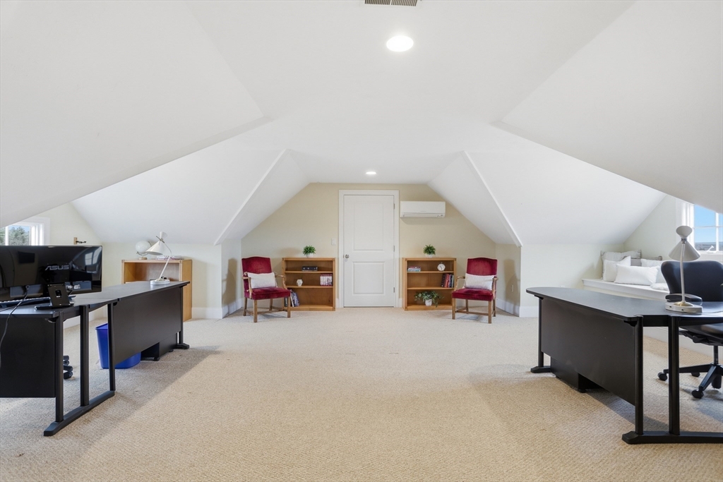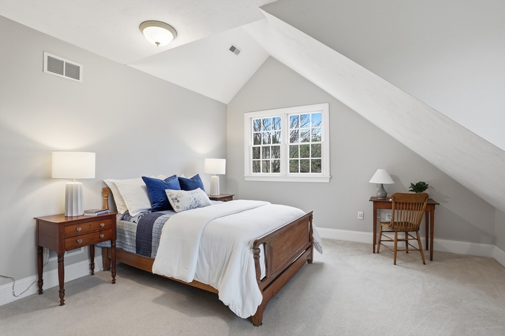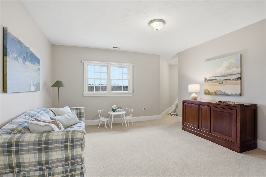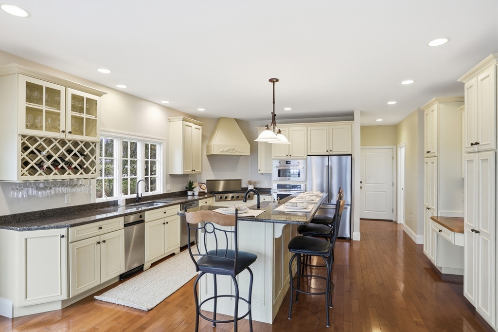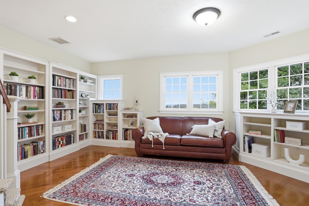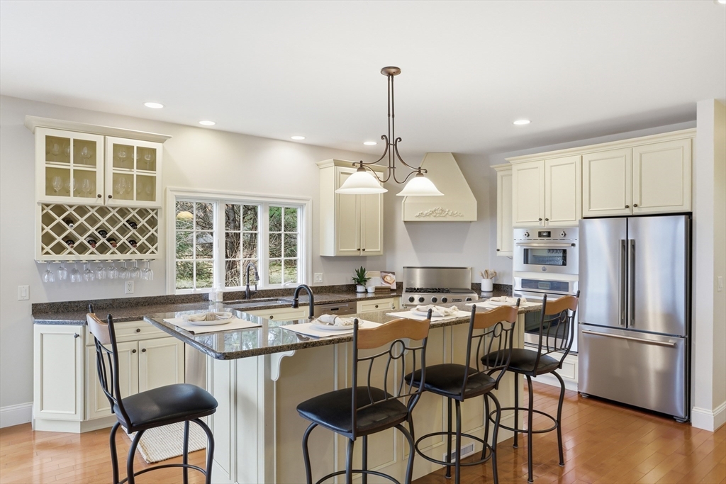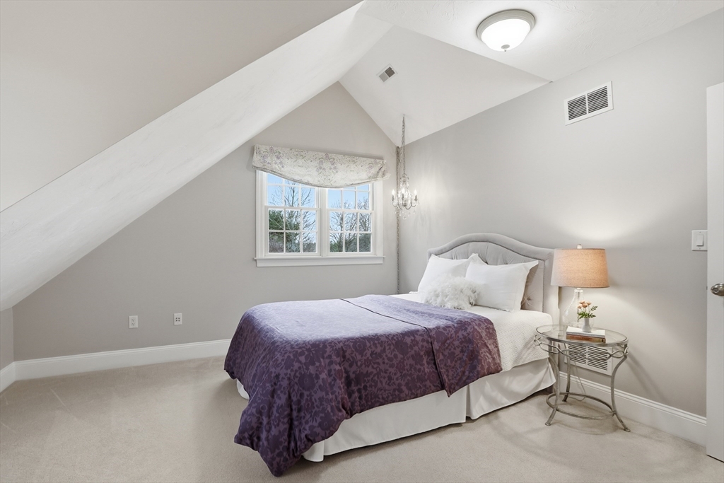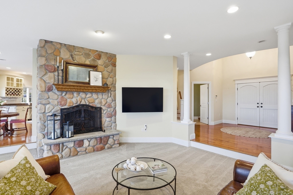 Rare opportunity to own a custom executive Colonial set on one of the finest lots in town, offering breathtaking panoramic views of Mount Wachusett and the central MA ridgeline. Bathed in natural light and designed for both refined living and effortless entertaining, the home features a gracious floor plan highlighted by a sunken living room wrapped in windows and anchored by a striking stone fireplace. A banquet-sized dining room, gourmet kitchen, and first-floor bedroom with en-suite bath complete the main level. Upstairs, the primary suite enjoys its own private wing with a spa-like bath featuring a Jacuzzi tub, tiled walk-in shower, double vanity, and walk-in closet, a private balcony captures stunning sunset views you can enjoy from bed. The opposite wing offers a library seating area, laundry room, two bedrooms, a full bath, and a versatile bonus room. A walk-up third floor provides additional flexible space and storage. The home is finished with a custom wine cellar!