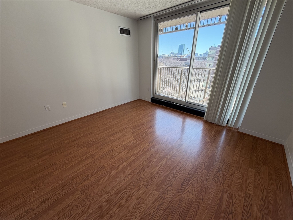 SOUTHWEST facing LARGE ONE BEDROOM WITH DEN with DOUBLE BALCONY! Wood floors throughout! Kitchen with stainless appliances. Park and city views. Central air. Rent includes one valet parking! Building amenities include 24/7 concierge and valet parking,on-site property management,gym with lap pool and hot tub,movie room, gathering and event room, complimentary shuttle service, laundry dryclean pick up and drop off. Beautiful North Point Park in front of the building. Whole Foods close by. Steps to Charles River and Cambridge Crossing!