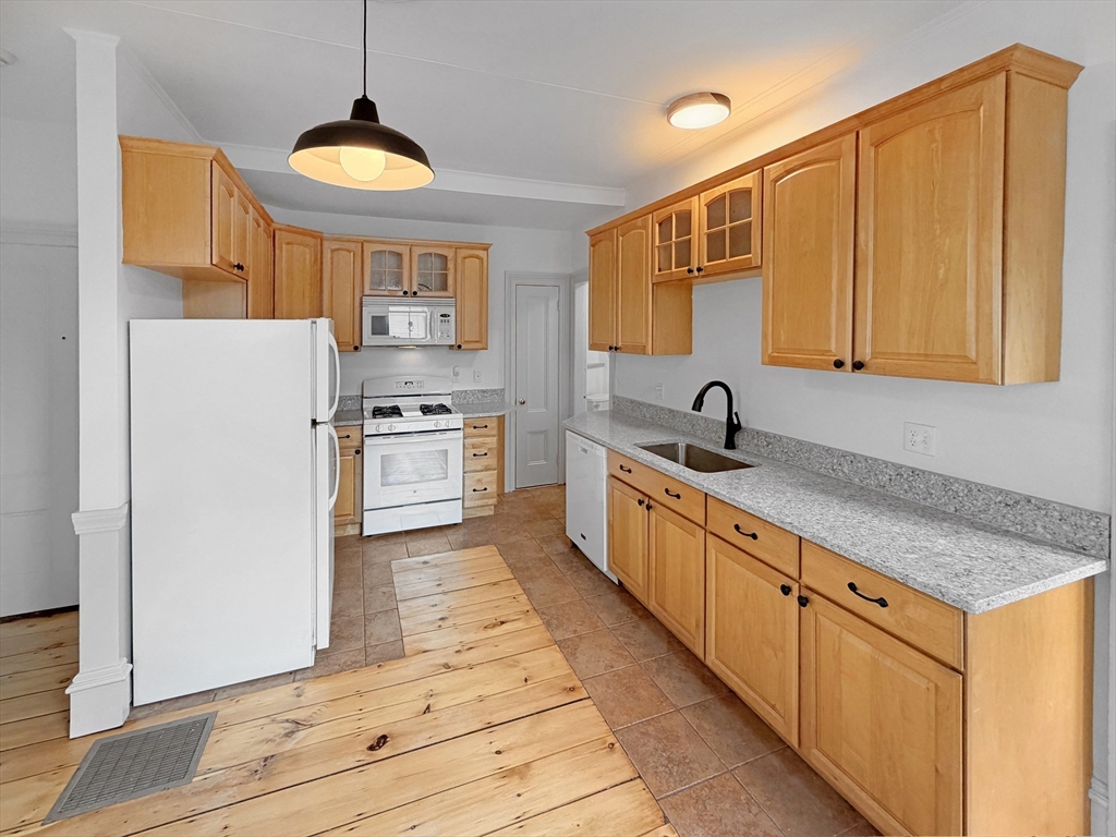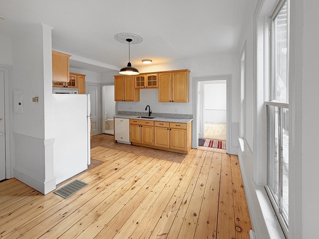 Spacious and sun-filled first-floor garden-style 1-bedroom apartment located in Newburyport’s highly desirable South End, just minutes from downtown shops, restaurants, parks, the rail trail, and the waterfront. This well-maintained home offers easy single-level living with an open floor plan, high ceilings, newly refinished hardwood floors, and updated lighting throughout. The kitchen features quartz countertops and opens nicely to the living and dining areas, creating a comfortable space for everyday living. Additional features include in-unit laundry, ample closet space, private storage in the basement, and one off-street parking space. Enjoy a small outdoor area perfect for relaxing. Available for a 1-year lease in one of Newburyport’s most sought-after neighborhoods.