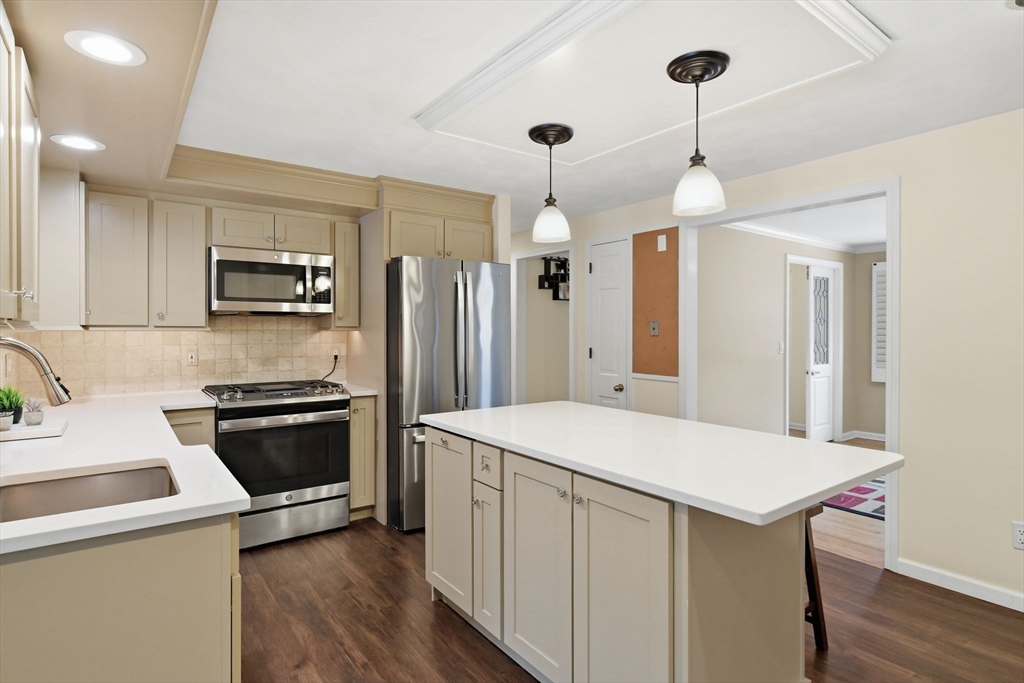 This home is special. Are you looking for a first floor en-suite bedroom with new bathroom? Do you want a 2nd floor with en-suite also? Would you love a unique, brick floor, sunlight filled great room with fireplace and food prep area? Brick patio, & how about a huge cozy fireplace in the living room? This home has all of that and more! The first floor main bedroom has 2 closets, an updated bathroom with soaking tub and Corian lined shower. There is also a half bath so your room can be off limits to all! The formal dining room is in the front of the home. The kitchen is a dream, tons of cabinet space, quartz counter tops, gas stove.The second floor has 4 big bedrooms and one has it's own bathroom. Main bath on the 2nd level is updated, ceramic tile flooring- spotlessly clean! Lots of storage. The basement has a full family room and an extra office as well as laundry area, shelving, updated electric and the home's 2 furnaces. Yes if you want to conserve just use one ! Move in condition!