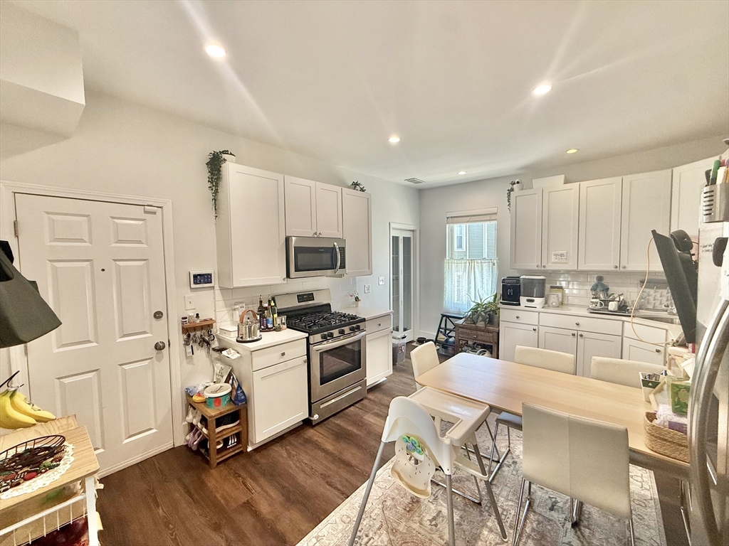 Bright & spacious 3-bedroom, 2-bath condo-style home offering modern comfort in Boston’s desirable Grove Hall neighborhood w/ easy access to transit, shopping, parks & local amenities. The unit features brand-new LVP flooring, central air heating & cooling, in-unit laundry, 9-foot ceilings & abundant natural light. Kitchen offers gas cooking, dishwasher, refrigerator, built-in microwave, ample cabinetry & glass-panel bi-fold doors connecting to the living area. The Master suite includes a double-vanity en-suite bath, standing shower, walk-in closet w/ built-ins & direct access to a private deck. 2nd-bedroom also features a walk-in closet. A large hallway closet provides extra storage & includes a medicine cabinet & ethernet hub for wired connectivity throughout. The versatile 3rd-bedroom off the kitchen works well as an office, nursery, playroom, dining room, or additional living space. Dedicated utility area includes laundry, water heater & gas HVAC system H2O & sewer included.