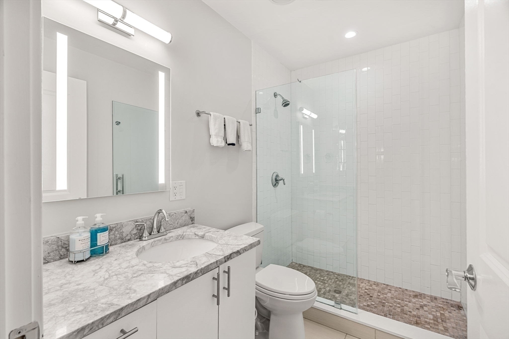 Better than new, this meticulously renovated two-level residence in a classic brick rowhouse blends historic charm with high-end designer luxury. The heart of the home is a chef’s dream, featuring a massive 9-foot island, custom cabinetry, and a premium Wolf and Sub-Zero appliance suite complete with a wine fridge. The sun-drenched open living area flows seamlessly from a gas fireplace with custom built-ins to a private oversized two story deck—perfect for entertaining against a stunning city skyline. A bright bonus room with an ensuite bath offers total flexibility as a third bedroom, sophisticated home office, or den. Retreat downstairs to two spacious bedrooms feat custom closets and two spa-inspired bathrooms. Complete with in-unit laundry, ample storage, low condo fees, and two full parking spaces, this home is a rare find. Perfectly situated near the beach, elite dining, and nightlife, with effortless access to Downtown and Logan Airport. Experience the pinnacle of city living.