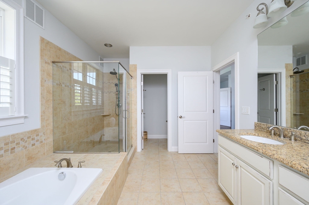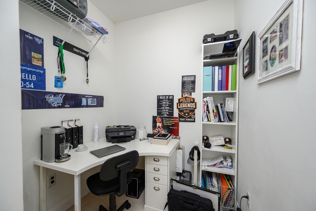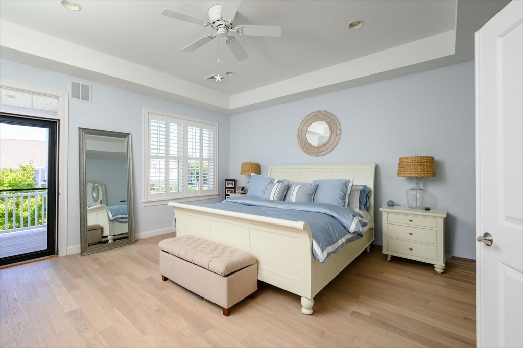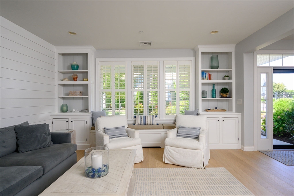 Rarely available Hingham Bay waterview townhome at Hewitts Landing! This 3-bedroom residence offers turnkey living across two levels of comfort and style. The renovated kitchen features quartz counters, stainless appliances, added cabinetry, and eat-in space, with white oak flooring flowing throughout. High ceilings enhance the open feel, while the living room with custom built-ins, window seat, and shiplap wall pairs perfectly with the dining room that opens to a private stone patio. Upstairs, the primary suite boasts dual walk-ins, spa bath, and a private deck—the only one in this row—with Hingham Bay water-views. Two additional bedrooms, laundry, full bath and a flex office complete the level. Extras include an attached 2-car garage, two deeded spots, and resort-style amenities: pickleball, clubhouse, gym, pool, and scenic waterfront trails. Steps to the Shipyard’s shops, dining, cinema, and ferry to Boston.