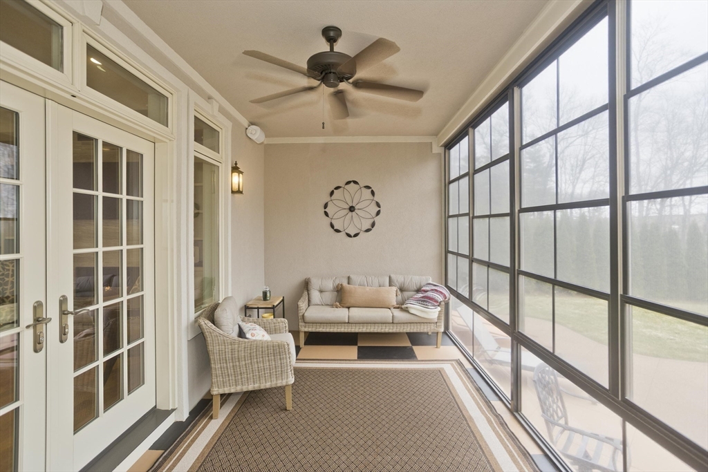 Exceptional brick custom ranch,w/2×6 construction, refined craftsmanship & thoughtful modern comfort & elegance. Pella windows fill the home w/natural light, while exquisite custom woodwork, tray & coffered ceilings, a striking fireplace & architectural sliding door which opens to an enclosed three-season porch. Gourmet high end kitchen showcases bespoke cabinetry, double ovens, & seamless flow to a spacious dining area overlooking a beautiful yard and stamped patio. The primary suite is a private retreat with a walk-in closet and a spa-inspired tiled bath with extensive upgrades. Luxury continues throughout w/custom bathroom vanities, gleaming hardwood floors, and a first-floor laundry room! A versatile den/ room offers space for a home office or guests.The incredible basement offers outstanding finished & bathroom potential, ideal for future living. Extra-large garage provides excellent storage. Gas Heat, Central Air, central vacuum, spacious grounds