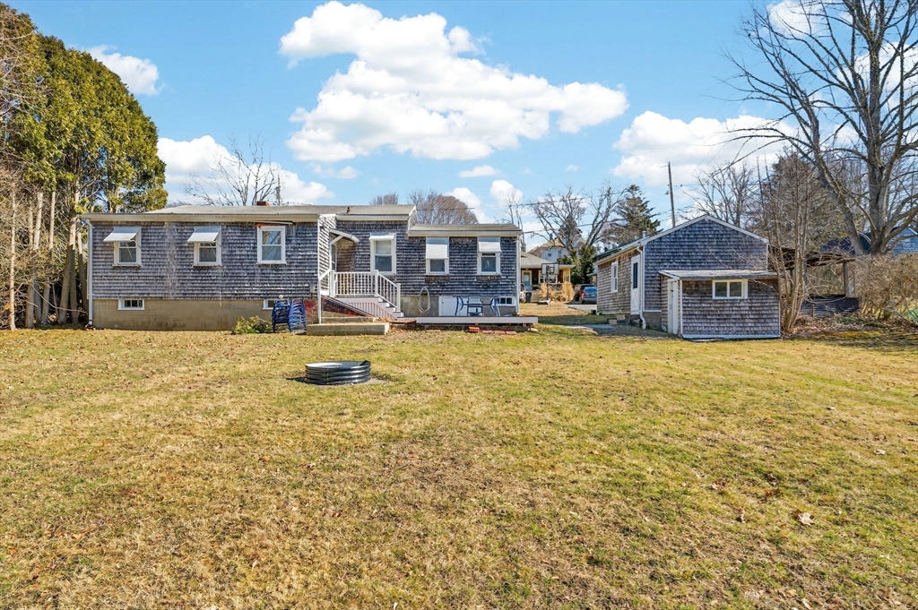 Located in the highly desirable Village of Padanaram in South Dartmouth, this charming ranch offers a rare opportunity to enjoy coastal living with deeded beach rights on a generous 1/3- acre lot. Whether you envision a year-round residence, seasonal retreat, or investment property, the possibilities are endless. Enjoy morning coffee on the newly refreshed front porch or spectacular sunsets from the newly built composite deck overlooking the extensive back yard. Inside, the home features an open living area and three comfortable bedrooms, all with ample closet space. The updated kitchen with dining area flows easily for everyday living while the convenient mudroom provides functionality and access to the outdoor deck. Recent updates include a new hot water tank (2024) and upgraded 200-amp electrical service. The property also includes a detached one-car garage with an attached storage shed. An exceptional opportunity in a prime location!