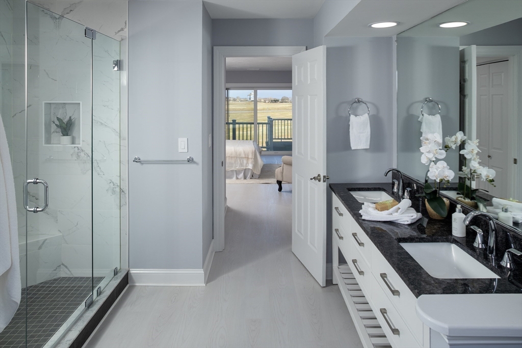 Discover the ultimate in country club living at White Cliffs, where breathtaking water views and luxurious amenities elevate your lifestyle. Tee off on the renowned Gary Player golf course, then unwind with a swim in the year-round heated pool, or enjoy a delicious meal at the private clubhouse restaurant. Play on pristine Har-Tru tennis courts, stay fit in the modern gym, and stroll along the sparkling white sand beach ~ all just steps from your door. The primary en-suite bedroom and living room showcase vistas of Cape Cod Bay and the lush fairways, which can also be enjoyed from your spacious deck and patio. This beautifully updated, open-concept home features two bedrooms, two baths, a chef’s kitchen, inviting living and dining areas on the main level, and a versatile lower level with abundant storage, laundry, a third bath, and a great room. At White Cliffs, every day feels like a vacation ~ relax, play, and savor resort-style living all year long.