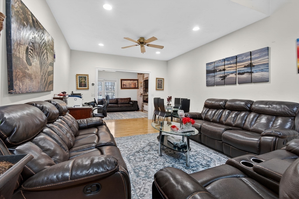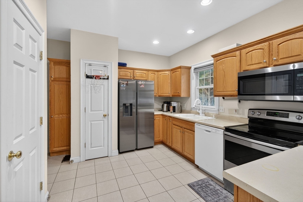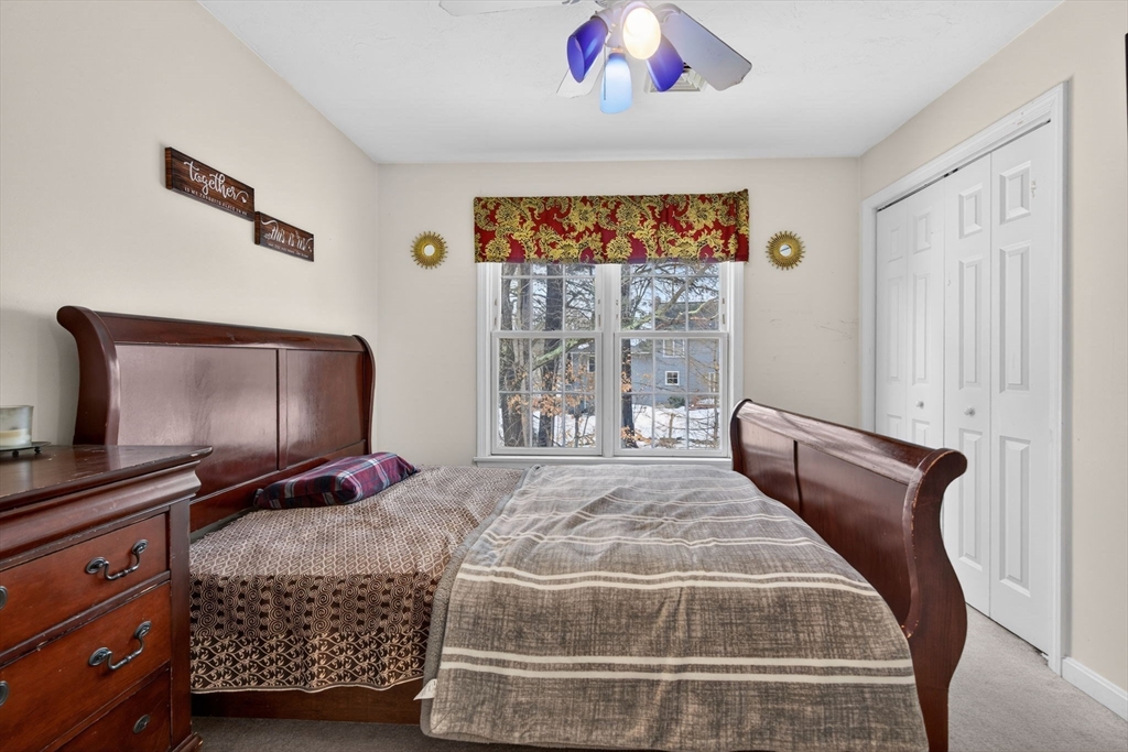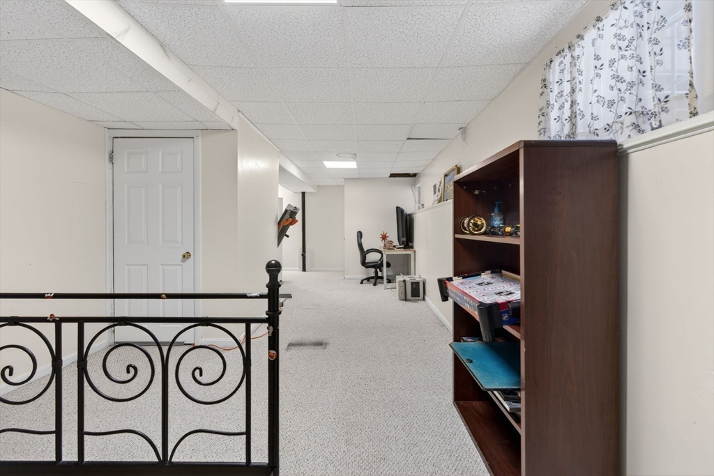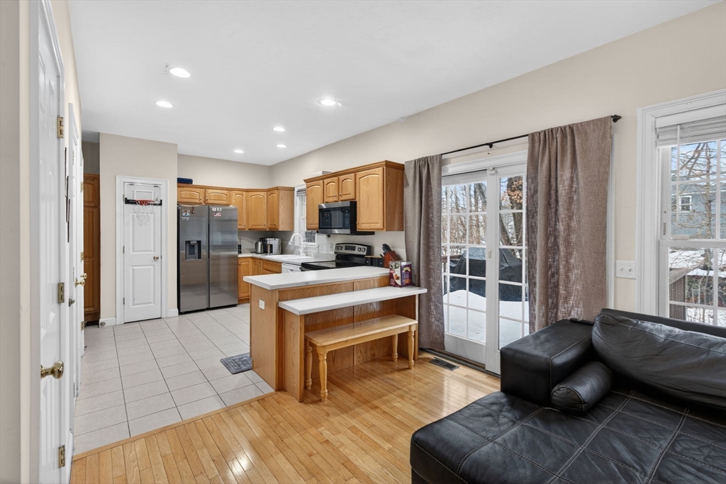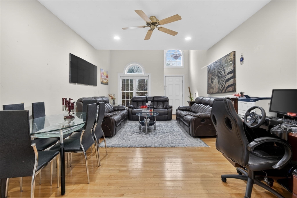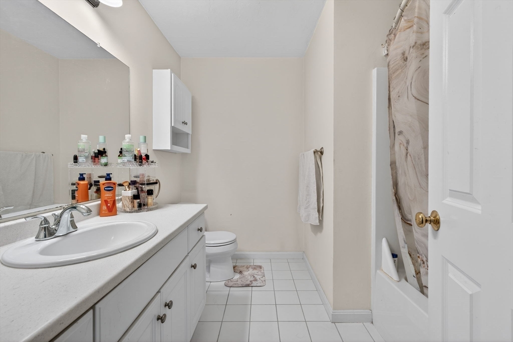 A rare opportunity to own a four-bedroom, two and a half bath residence in the desirable Samreen Villas. This private end unit offers exceptional natural light and a thoughtfully designed layout ideal for both everyday living and entertaining. The main level features hardwood and ceramic tile flooring, an open-concept kitchen and dining area, and a dramatic living room with soaring ceilings and an oversized window that fills the space with natural light. A convenient half bath completes the first floor. Upstairs you’ll find three generously sized bedrooms that share a full bath, along with a spacious primary suite featuring a vaulted ceiling and private en-suite bath. Laundry is conveniently located on the second floor.The finished lower level offers additional flexible living space—perfect for a home office, media room, or playroom. A wonderful combination of privacy, space, and functionality in a highly desirable community.