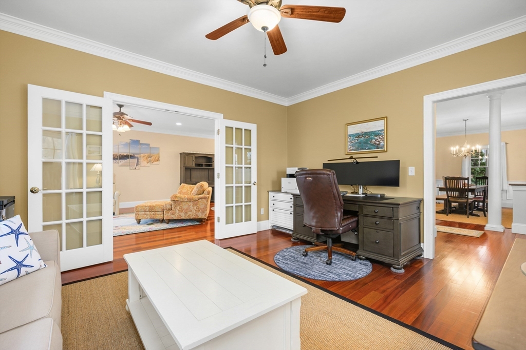 Spectacular coastal retreat just steps from a stunning private beach on Cape Cod. Located in the highly sought-after Carleton Shores community, this stately custom-built Colonial offers refined luxury, exceptional craftsmanship, and elegant seaside living.Designed by one of Cape Cod's premier architects, the thoughtfully crafted floor plan blends sophisticated entertaining with comfortable everyday living. The first floor features rich Brazilian cherry hardwood floors with radiant heat, soaring 9-foot ceilings, and detailed crown molding. The chef's kitchen is ideal for entertaining, appointed with double stainless-steel ovens, an oversized island, and a wet bar. Upstairs, generously sized bedrooms are thoughtfully positioned for privacy and comfort. The finished third level with full bath offers flexible space for a home office, game room, or au pair suite.Recent updates throughout make this exceptional property feel like new in one of Cape Cod's most desirable seaside communities.