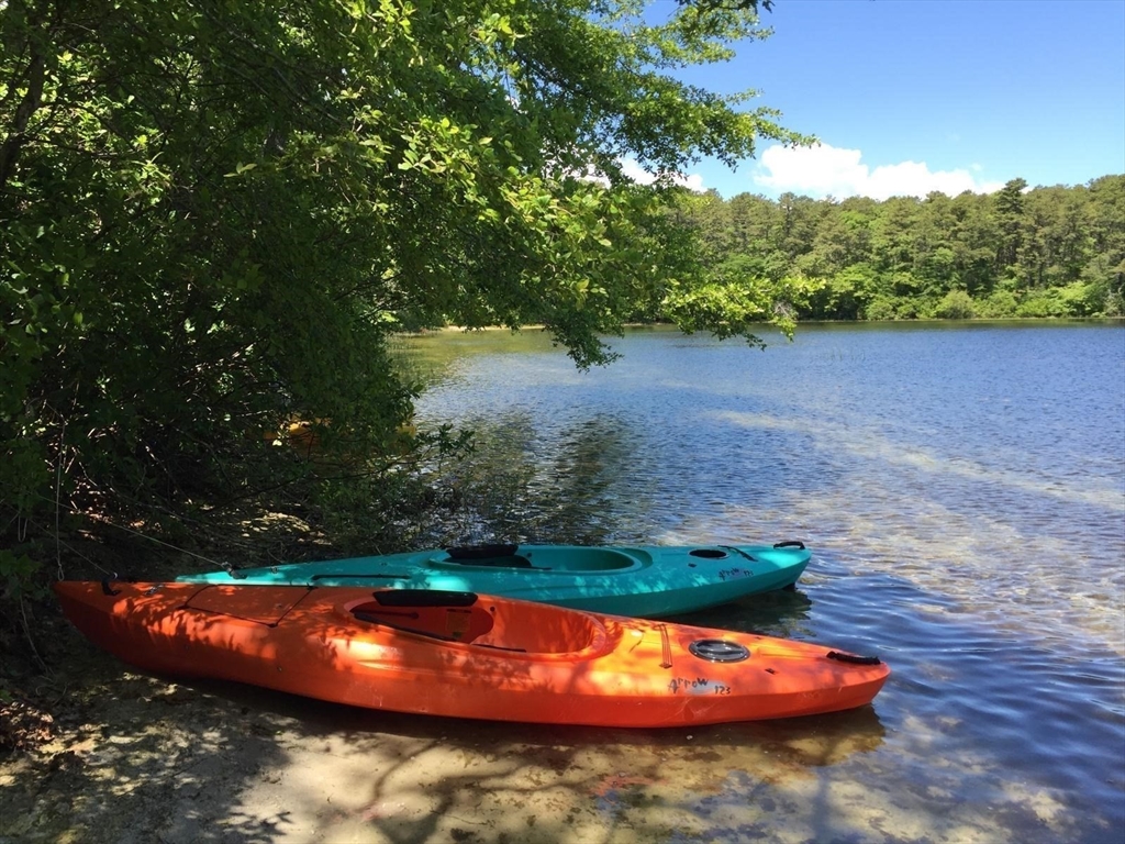 Here's the one you've waited for. Well situated second floor corner unit at desirable Bassett Pond Condominiums, a wooded, well maintained complex. The unit features a large living area leading to a separate dining room. You will find an ample kitchen to the right with of it and a wonderful, bright sun room to the left with an outdoor staircase to the yard below. Bassett Pond itself with its sandy beach is steps away from the building with private access. The spacious primary bedroom includes a half bath and closet. There is a second bedroom with closet and the central bath has tub and shower. You will find washer and dryer for the unit in the lower level where this is also a private storage space with both indoor and outdoor access. Also close by is a private carport space and additional parking.Per HOA rules, no pets allowed.