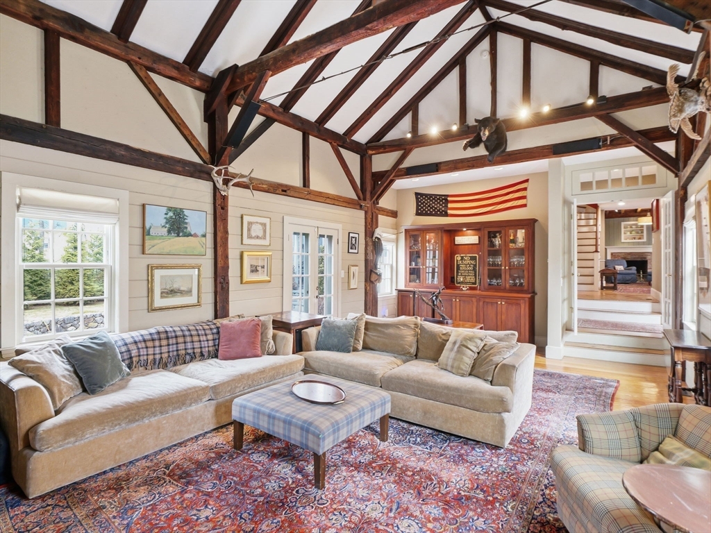 Beautiful 1 Acre Estate abutting Phillips Academy. A commanding Federal Colonial, established in 1850s, offers a distinguished living experience marked by its enduring character & charm. The converted Barn (now Family rm) w/dramatic fireplace & attached Game rm serves as the hearth of entertaining in this 15 rm home. Formal Dining connects seamlessly to the oversized Kitchen w/custom cabinetry, soapstone counters & fireplaced sitting rm. Living rm has attached screened porch for summer dining overlooking private patio. A total of 5 Bedrooms, 4 Full, 3 Half Baths &7 Fireplaces complement the living space Outside is met with 3 car garage and professionally landscaped grounds by Laura Bibler, all elevated by an in-ground pool, stone fireplace, spa & 2 story Pool House w/ separate living/entertaining quarters, full bath, kitchenette and laundry capability. Convenient proximity to all the town offers with the opportunity for sophisticated living as a part of Andover’s history!