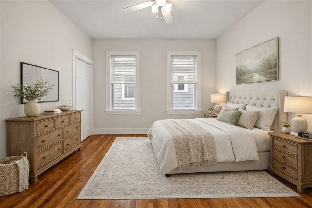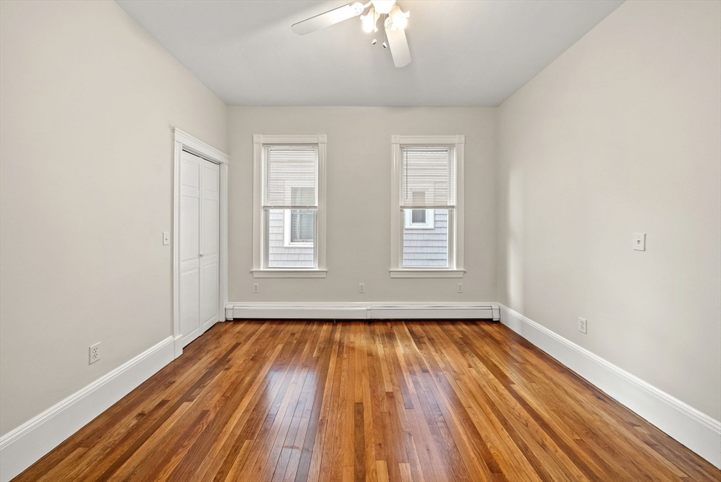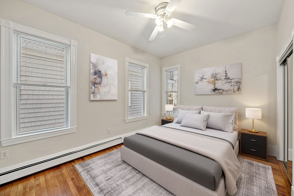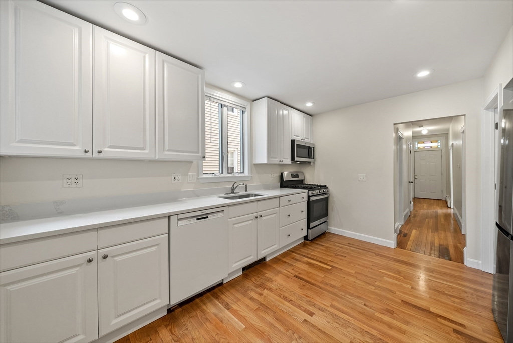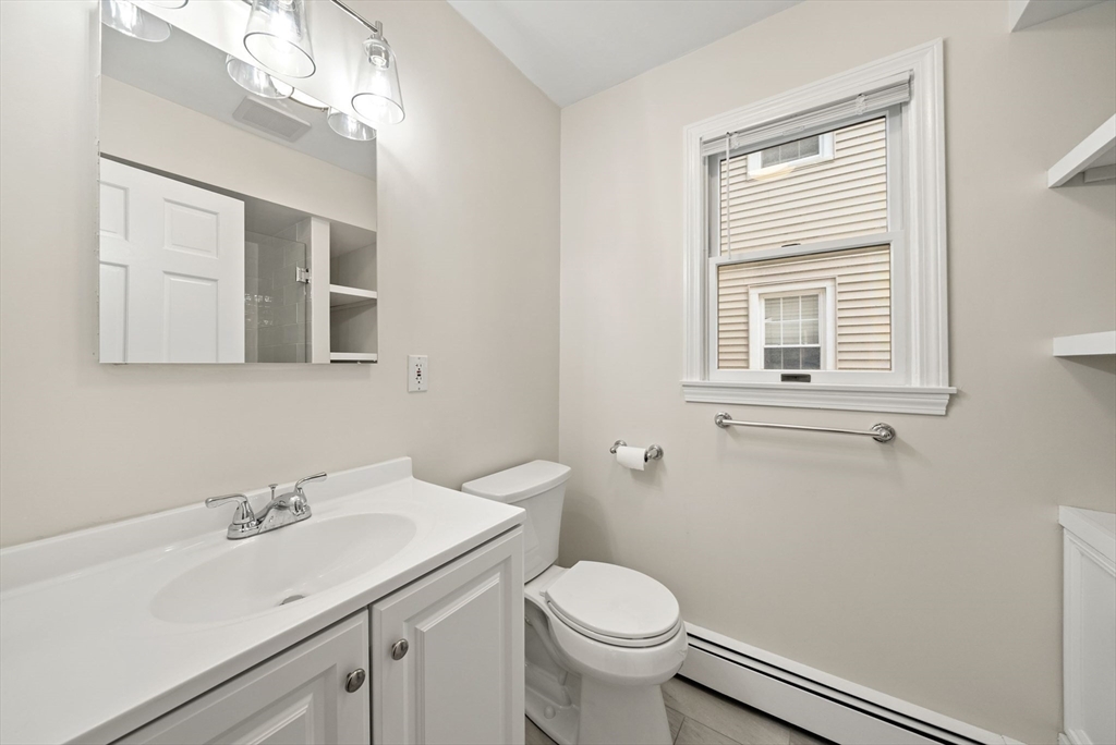 Available for June 1 occupancy. Step into your private entrance & discover this renovated, sun-drenched 2-bedroom apartment on South Boston’s sought-after East Side. Located a couple of blocks from M St. Beach, this bright & airy unit features gleaming hardwood floors, high ceilings, gas heating & in-unit laundry. The newly renovated eat-in kitchen boasts quartz countertops, gas cooking & a picture window above the sink, complemented by high-end stainless steel appliances. The spacious living room offers a stunning bay-front picture window & plenty of room for a home office setup. Both bedrooms are generously sized & include ceiling fans for added comfort. The newly updated bathroom features a built-in linen closet & a tiled shower with a sleek glass door. Additional highlights include extra basement storage & a covered, shared deck for outdoor enjoyment. Located in a well-maintained, owner-occupied home, with the landlord residing in the upstairs unit. No smoking/vaping or pets.