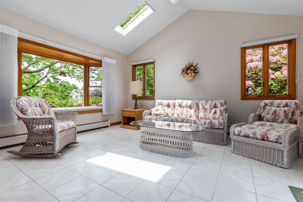 Experience breathtaking ocean views from this beautiful home, ideally situated in one of the area’s most sought-after neighborhoods. The front entry welcomes you with a classic staircase, setting the tone for the home’s timeless elegance and inviting atmosphere. This home was thoughtfully designed with entertaining and intimate gatherings in mind with a formal living room plus additional expansive den featuring a charming wood-burning fireplace. At the heart of the home, the kitchen and dining areas flow effortlessly into a sun-drenched, skylit four-season sunroom. From there, step out onto a private patio overlooking meticulously landscaped gardens. The primary suite provides a relaxing retreat with a walk-in closet, separate dressing area, and convenient access to the main bath featuring a soaking tub and bidet. The finished lower level expands the home’s lifestyle appeal with an impressive recreation space that includes a "rec room", summer kitchen & 2 car garage access with storage