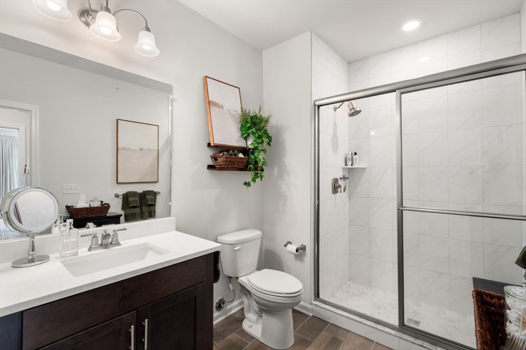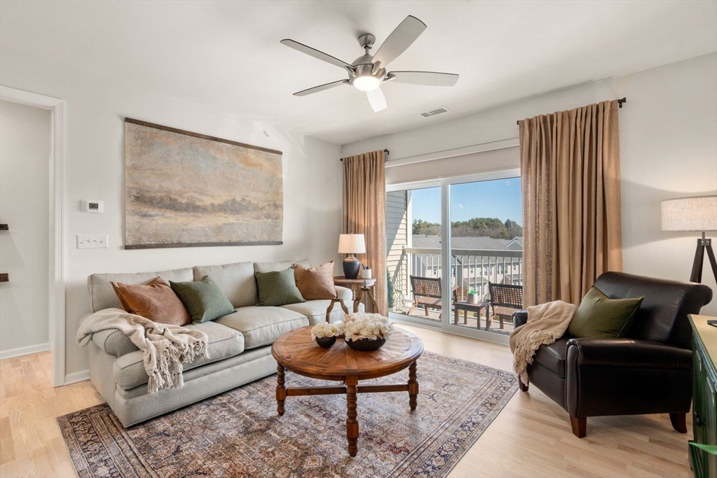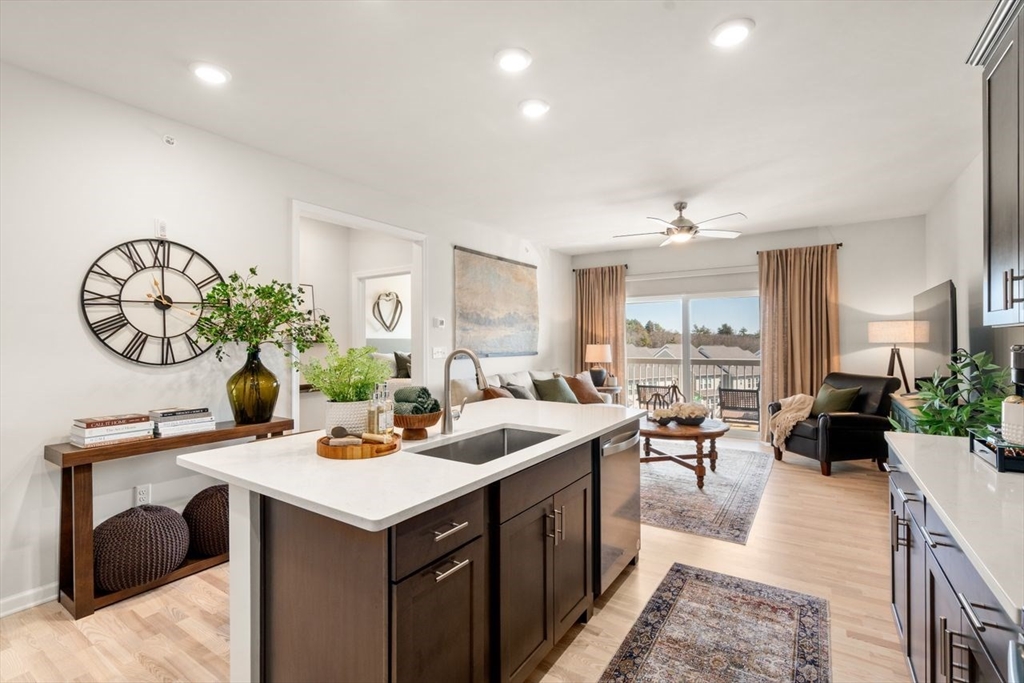 Barely lived in & pristine, this elegant 1-bedroom-plus condo sits on the desirable 4th floor of a sought-after 55+ community & offers bright, open-concept living with a sleek modern kitchen featuring stainless steel appliances & a spacious island that flows seamlessly into the sunlit living room, where a sliding door opens to a private exterior deck. A luxurious primary suite with an oversized walk-in closet, a versatile flex room perfect for a home office or den, high ceilings, abundant windows, & a separate laundry room all elevate the home’s comfort and style. Residents enjoy exceptional amenities, including a beautifully appointed clubhouse with lounge areas, fitness equipment, outdoor grills, & a full kitchen. Ideal location near the Concord line, Commuter Rail & the Rail Trail adds convenience & outdoor enjoyment. Loads of parking, EV charging, elevator access, complete this fabulous property! Don’t wait!