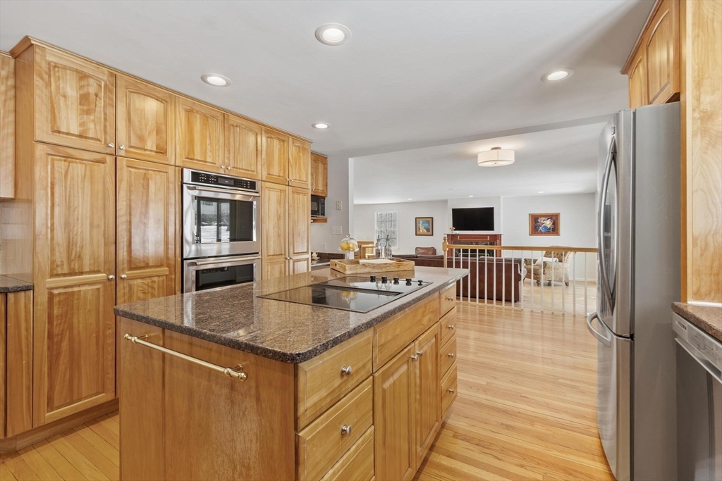 Convenient & Private at the end of the Cul-de-sac! A+ North Andover location! A Sidewalk to the Drummond playground, town common, ice-cream, lunch, sledding, summer camp & so much more! There's a sidewalk also, to the nearby Annie Sargent Elementary School. Current owners loved this home & location so much, that in 1998 they decided to stay, and enlarged this home in 3 major ways. 1. Added the beautiful spacious family room wide open to the kitchen & deck area. 2. Added a big roomy primary bedroom suite with bathroom above the family room. 3. Added the spacious 2 car garage. Lots to love here. There's a first floor home office, a real laundry room on the 2nd floor, bonus finished area in the lower level, perfect for exercise, playroom or another office area. There's hardwood floors throughout (except primary bedroom suite), there's a screen porch, large deck, & even a sport court! Old Center North Andover home & location at its best is right here in this neighborhood! Don't Miss This!