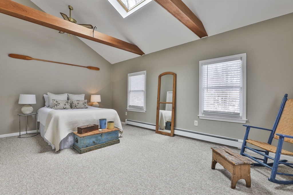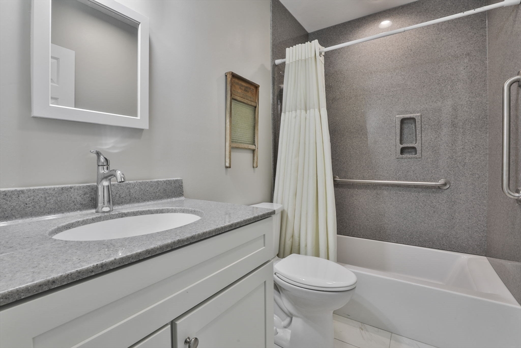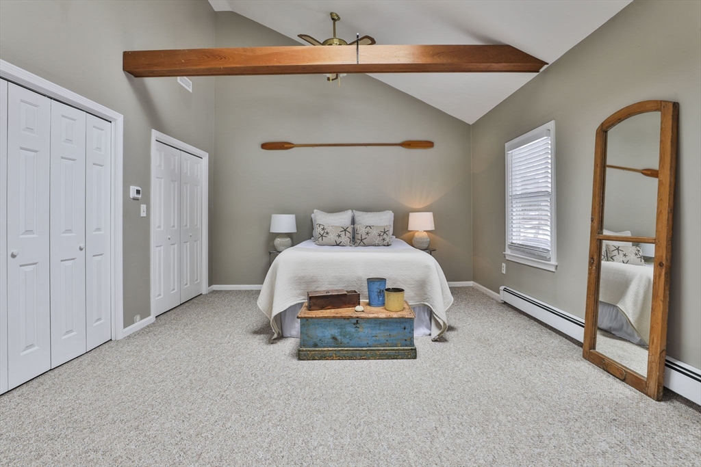 Looking for a renovated and quiet end-unit townhouse? This is the one! Major updates have already been completed with no expense spared. The second-floor full bath was fully renovated in 2025. The new kitchen and new appliances was fully renovated in 2024. A new A/C unit was installed in 2023. All this giving you peace of mind for years to come. Tucked in the back of a small condo association near downtown Merrimac, this home offers both privacy and convenience. The sliding door off the kitchen opens to a private deck with a storage shed, surrounded by trees on two sides — perfect for relaxing or entertaining. Both bedrooms are generously sized, including a spacious primary bedroom featuring cathedral ceilings with exposed beams. You’ll also appreciate the ample storage throughout and 2 parking spaces. Additional updates include fresh paint, newer carpeting and blinds, a new shed door, updated deck railings, and a newer ceiling fan. Simply move in and enjoy!