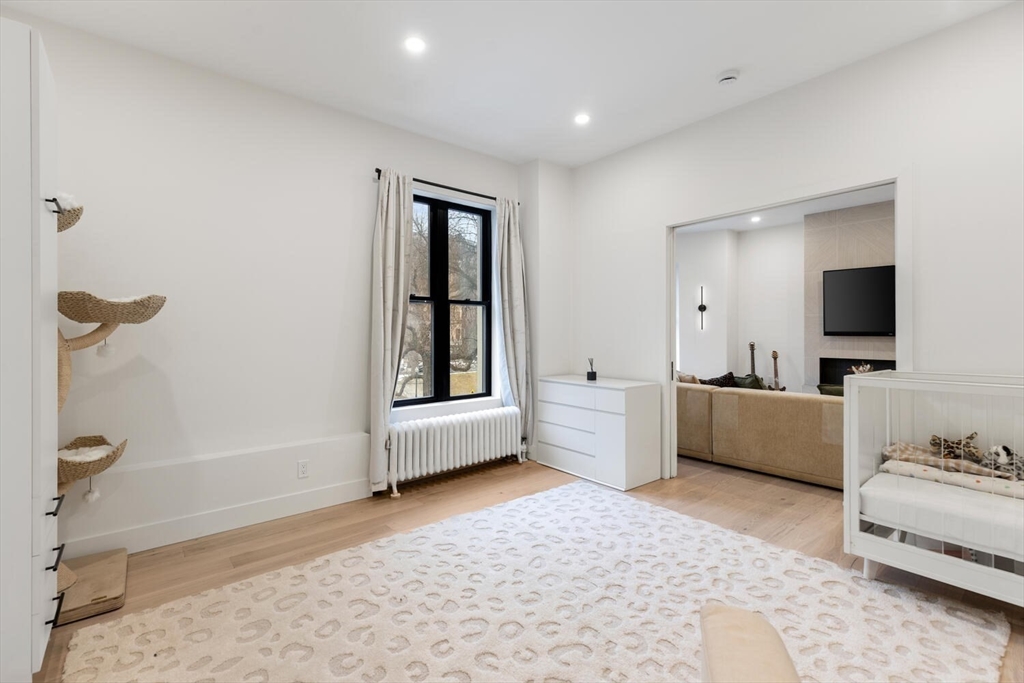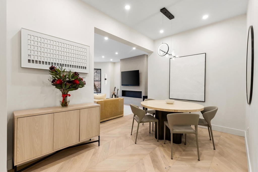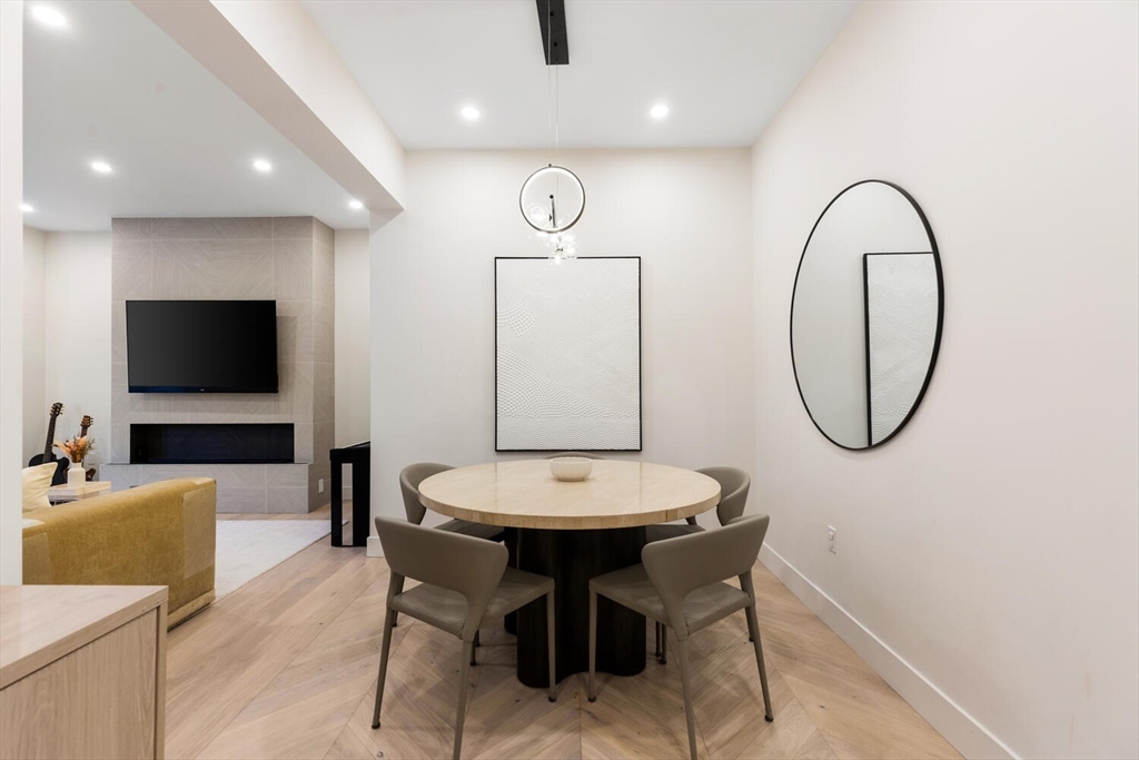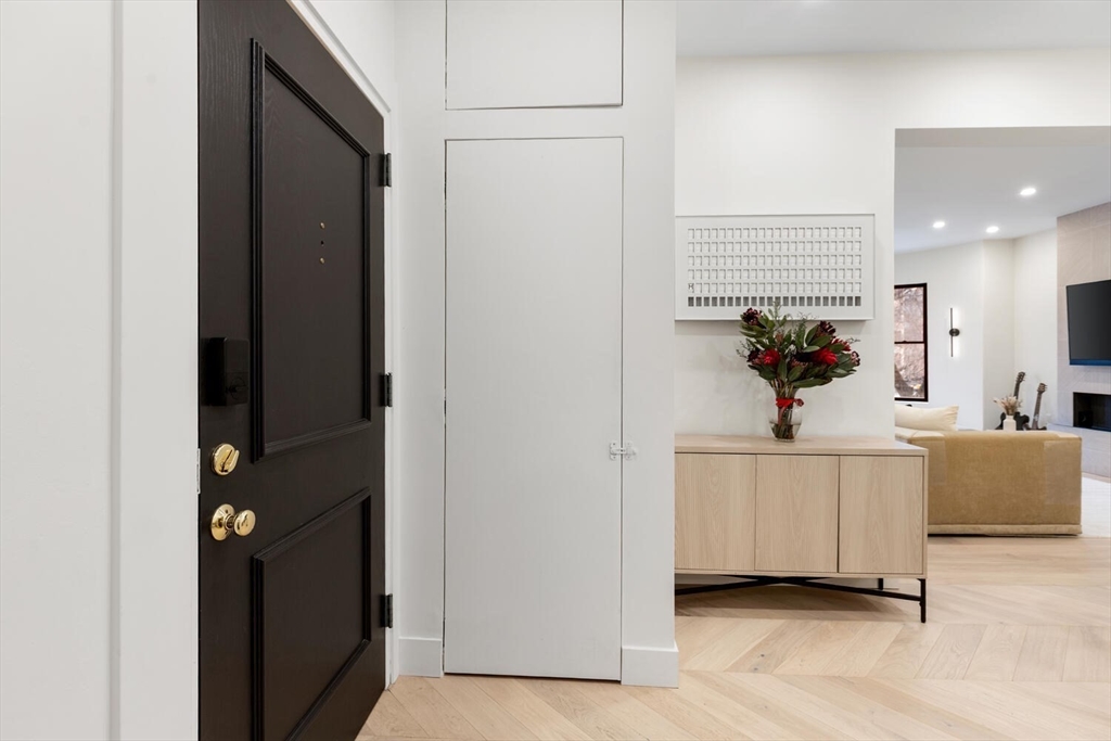Residence 24 at 382 Commonwealth Avenue is a fully gut-renovated two-bedroom, two bath home offering refined modern living in the heart of Back Bay. Rebuilt from the studs with exceptional attention to detail, the residence blends contemporary design with classic Commonwealth Avenue elegance. Sunlight pours through oversized windows overlooking the Commonwealth Avenue Mall, illuminating an open living and dining space anchored by a sleek water vapor fireplace. The dining area showcases striking chevron hardwood flooring, while wide-plank floors continue throughout the home. The kitchen features custom cabinetry, stone countertops, and high-end appliances, and all bathrooms have been completely redesigned with clean, spa-inspired finishes. Additional highlights include in-unit laundry and a professionally managed elevator building, moments from the Charles River Esplanade, Newbury Street, Copley Square, and Back Bay’s premier dining and shopping.