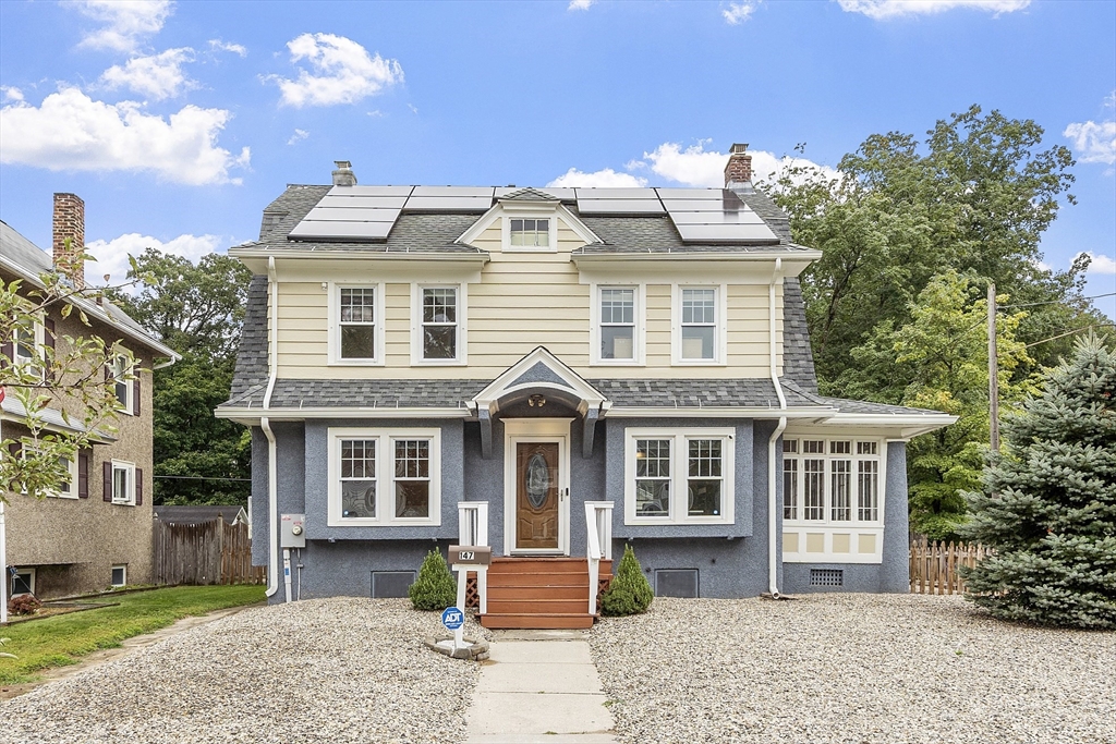 This 1922 residence embodies timeless appeal; full of charm and character, and beautifully maintained. This 3-bedroom, 2-bathroom home features exposed wood beams on the first floor and well-cared-for hardwood floors throughout. The spacious sunroom offers the perfect spot to relax or entertain year-round. Enjoy cooking in the huge kitchen and the comfort of updated bathrooms. Recent upgrades include new landscaping, all-new blinds, and a few new windows, adding to the home's fresh, inviting feel. A nice-sized driveway and garage provide plenty of parking and storage. Motivated seller—this home blends timeless details with modern updates and is ready for you to move in and enjoy! *Solar contract to be assumed by buyer(s)
