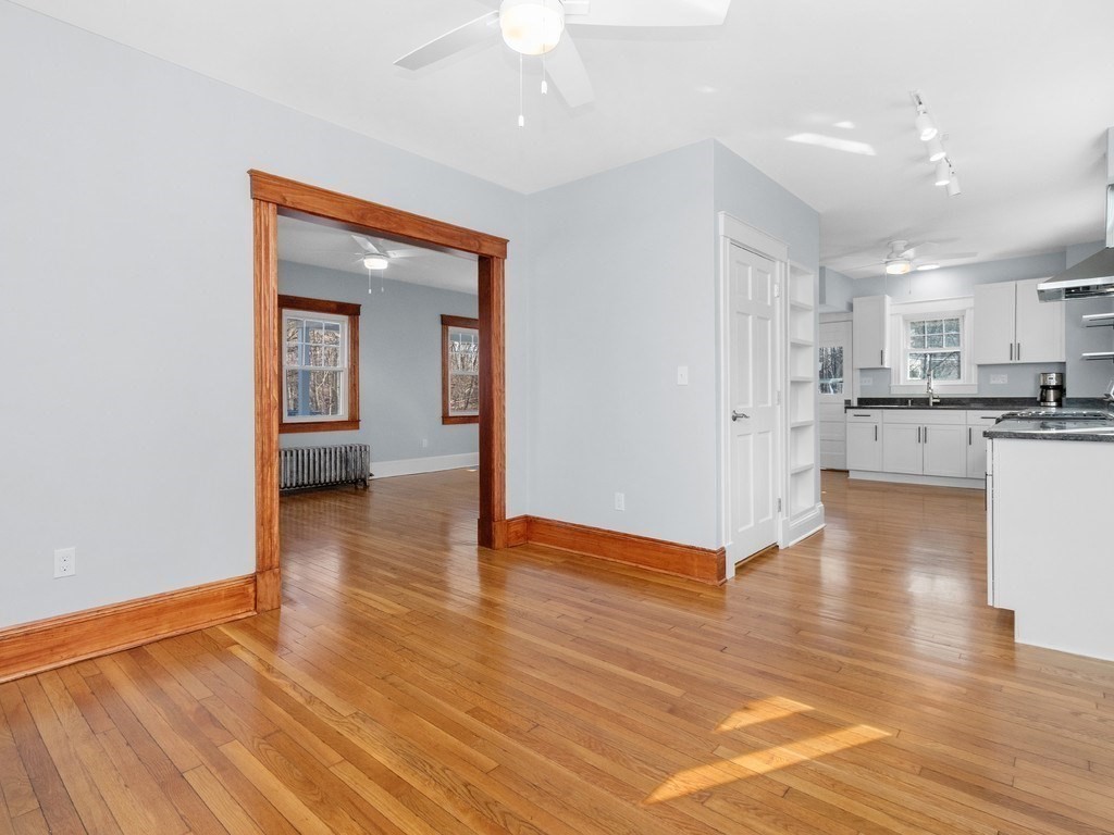 A stunningly renovated Craftsman Colonial featuring gleaming hardwood floors, an elegant curved staircase, and a bright living room and formal dining room accented by natural wood moldings and grid windows. The chef-designed kitchen shines with new shaker cabinets, granite counters, and stainless steel appliances. Upstairs, a heat exchanger ensures clean, comfortable air, complementing a serene primary bedroom with a walk-in closet and a remodeled bath offering radiant heat and a double vanity. Recent updates include all new electrical, plumbing, heating/hot water, and fresh paint throughout. A walk-up attic, ready-to-finish basement, private back yard with a quaint patio, and ample parking for easy access. Ideally located across from the scenic Charles River and moments from the Brandeis commuter rail, Rt. 128, the Mass Pike, and the bike path—a true commuter’s dream.