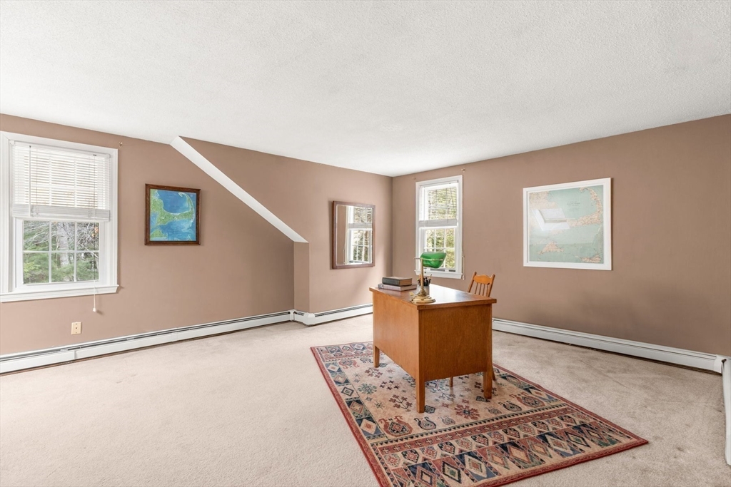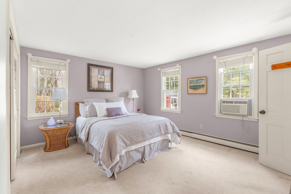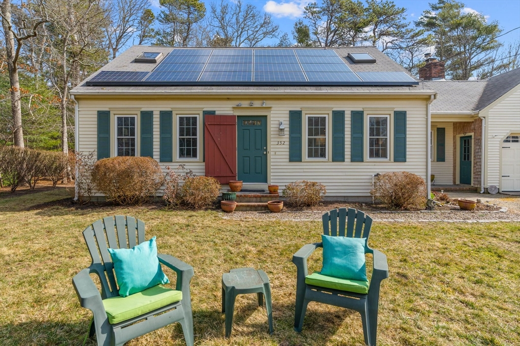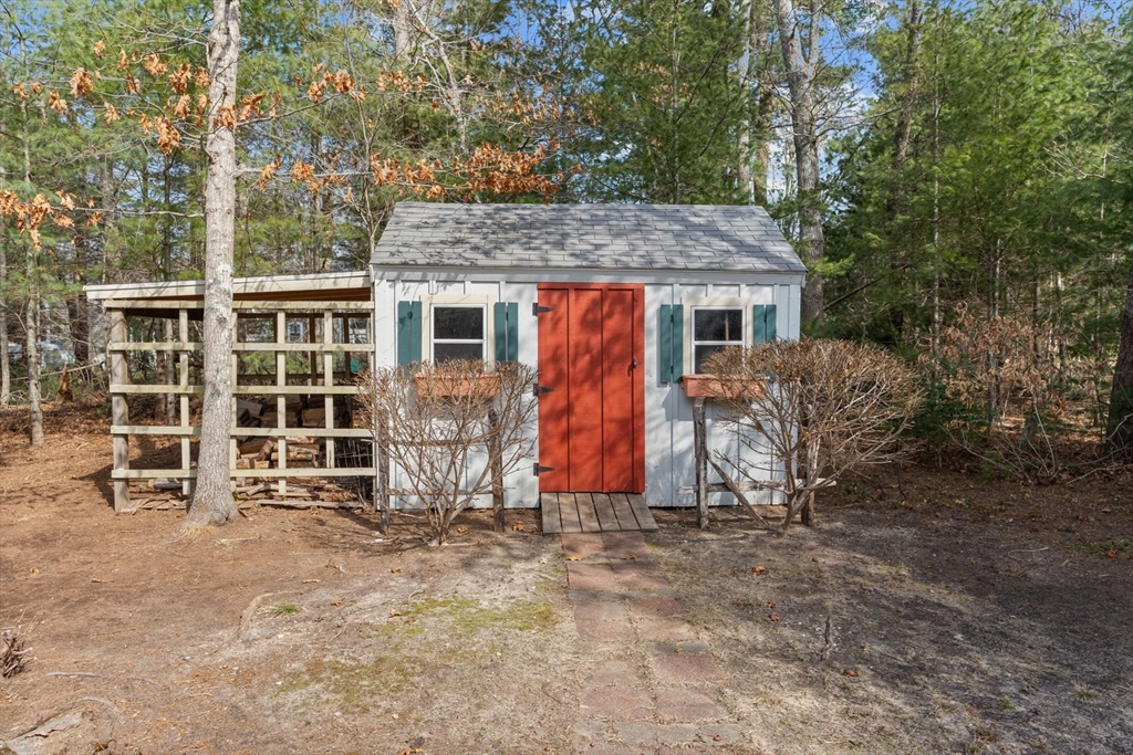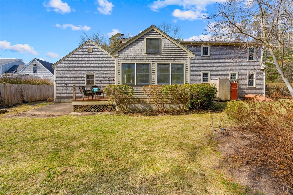 This 1,963 sf well-built home is set back from the road on 1/2 acre of lovely grounds. A standout 4-season room truly sets the tone, with soaring ceilings, exposed beams, and 3 walls of windows that fill the space with natural light all day. It’s the kind of room you’ll be tempted to spend the entire day in- hosting friends, or simply taking in the view. It opens directly to outdoor living on the the deck/patio. Just off the kitchen, a cozy fireplaced room invites quiet evenings by the fire. The kitchen opens to the dining room + is well suited for gatherings, while a nearby living room/den offers space for TV, or a home office. offers privacy along with a comfortable, functional layout. The first-floor primary suite provides a quiet, while 2 oversized upstairs bedrooms share a Jack-and-Jill full bath. A partially finished basement, a large shed, and cleared, ready-to-plant grounds—offer open space. Enjoy beaches, the Lumbert walking trail and the charm of Centerville Village nearby.