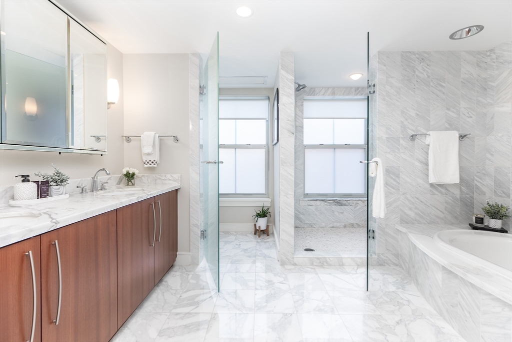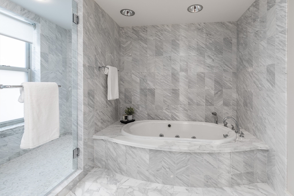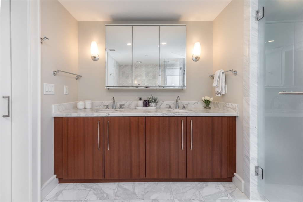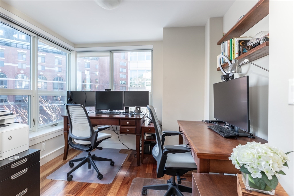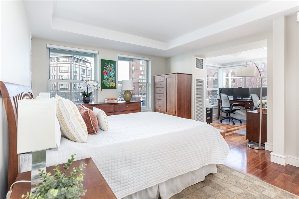 Unit 4301 is a southeast-facing corner 1 bedroom + office residence showcasing harbor views and waterfront living, set within one of Boston’s most prestigious full-service communities. Spanning 1,149 sq feet of thoughtfully designed living space, this home offers an exceptional blend of luxury & comfort, just moments from the North End, Downtown, and the Harborwalk. The spacious layout is complemented by a dedicated home office, ideal for today’s work-from-home lifestyle. Open-concept living & dining areas are framed by oversized windows that welcome natural sunlight while capturing harbor views. The kitchen is outfitted with Thermador appliances. 2 full baths provide convenience and flexibility for guests. Battery Wharf is a full-service luxury building offering 24-hour concierge and hotel-style amenities, along with unparalleled access to Boston’s celebrated dining, cultural destinations, and marina lifestyle. The home is complete w/ 1 valet parking space and a private storage unit.
