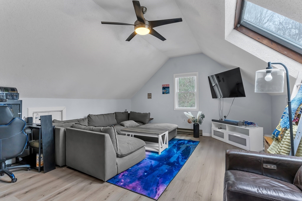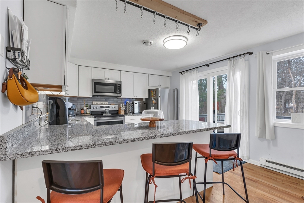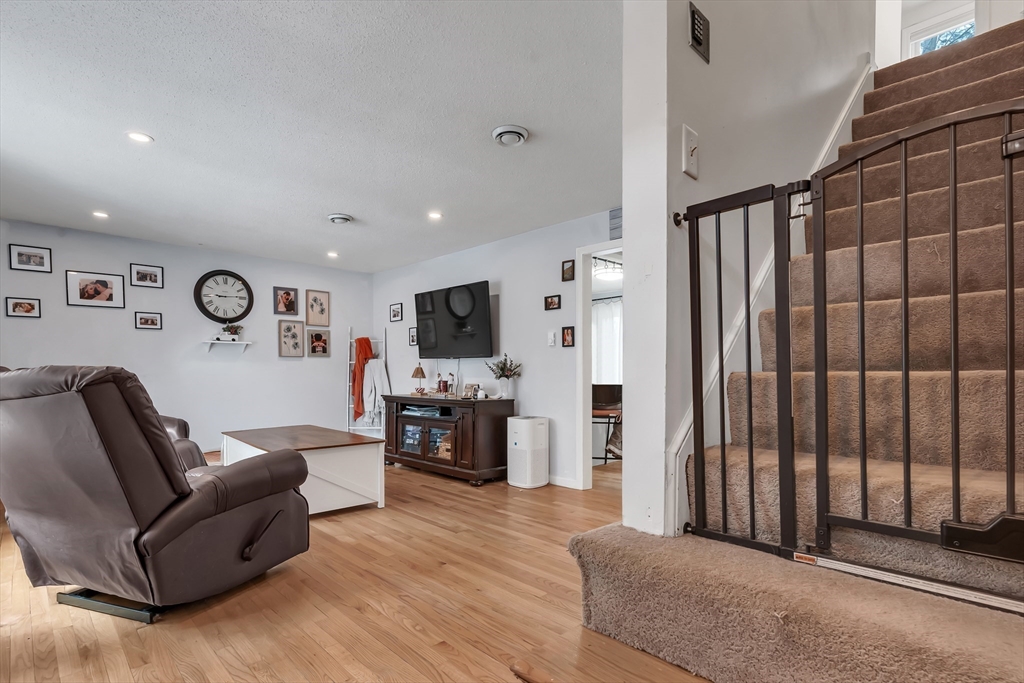 Welcome Home! Well maintained 3-level townhouse located in a desirable community with convenient access to major highways and nearby commuter rail stations. This spacious home offers 2 large bedrooms, 1.5 baths, central air, and a versatile third-floor loft ideal for a fun family room, or home office. The updated kitchen with ample cabinet space opens to a bright living and dining area with great natural light and an easy flow for everyday living. Sliding glass doors lead to a private back deck, perfect for relaxing or entertaining. Recent interior updates include new flooring on the upper level, all new carpeting, recessed lighting, and new bedroom and closet doors, creating a fresh and updated feel. The partially finished basement provides additional storage and flexible bonus space. The HOA has recently completed major exterior improvements including new vinyl siding, roof, windows, and deck, offering peace of mind and long-term value. *Subject to sellers finding suitable housing*