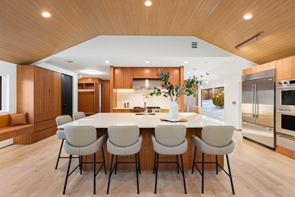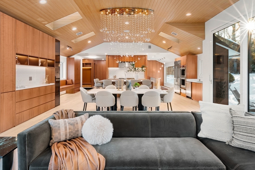 Unmatched quality and craftsmanship define this architecturally inspired new home. Maple wood floors, cherry paneled walls and expansive German triple-glazed windows create its curated aesthetic. An expertly designed kitchen with a huge island, custom window seat, and generous dining area open seamlessly to the family room anchored by a striking marble fireplace. The first floor primary suite features a stylish bathroom and situated with views of the beautiful property. Three additional bedrooms provide flexibility for family and guests. The impressive lower level has a large bonus room, office, fitness room and media room with leather-paneled soundproofing walls. Retreat to a palatial spa inspired bathroom with a sauna. Truly one-of-a- kind living inside and out; the beautifully landscaped backyard is adorned with a large stone patio, fire pit, built-in barbecue and kitchen, and professional putting green. Convenient location to major commuting routes to Boston.