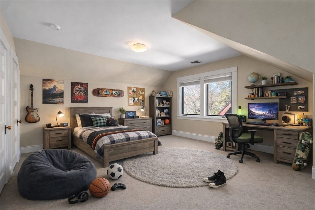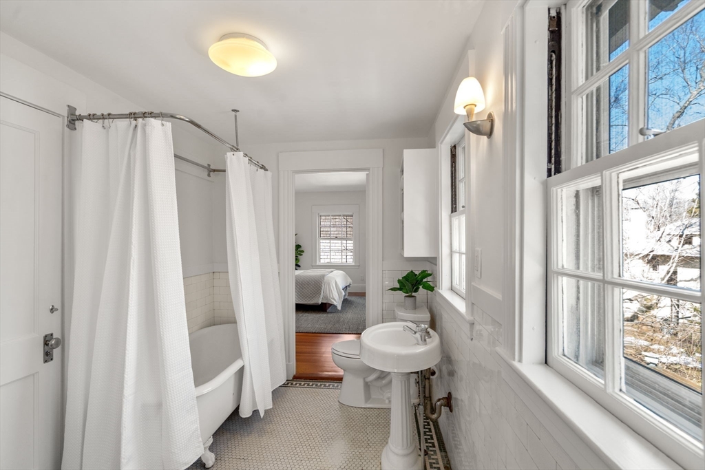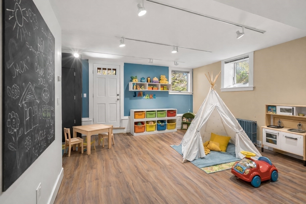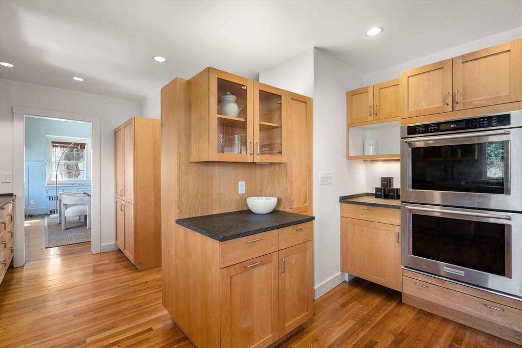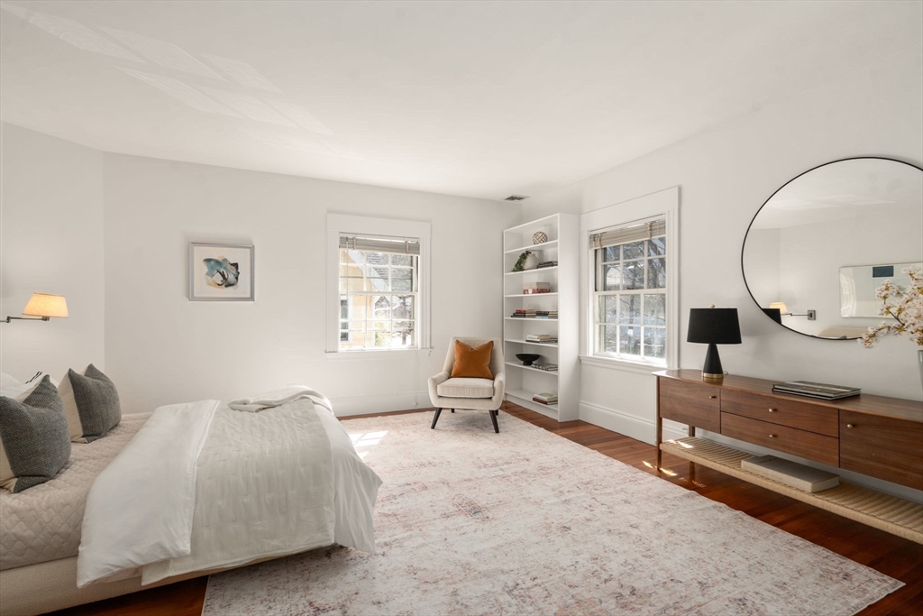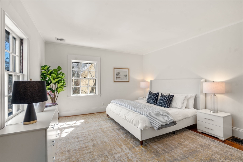 Sun-filled stucco Craftsman-style Colonial with side entrance in Brookline’s coveted Fisher Hill neighborhood, across from Runkle School. A gracious foyer opens to an expansive living room with fireplace and striking coffered ceiling. A bright four-season sunroom with French doors flows into the elegant dining room, ideal for entertaining. The designer eat-in kitchen features custom cabinetry, stainless steel appliances, honed granite countertops, dedicated workspace & access to the exterior deck. The second level offers four spacious bedrooms & two full bathrooms, including a primary suite with en-suite bathroom. Two bedrooms & full bathroom complete the third floor. Finished lower level with direct yard access includes custom cabinetry, cedar closets, storage, half bath & laundry. Architect-designed 900sf two-level mahogany deck with lighting overlooks a landscaped yard with irrigation & shed. Three-car parking, central A/C. Near C & D trains, shops & restaurants.