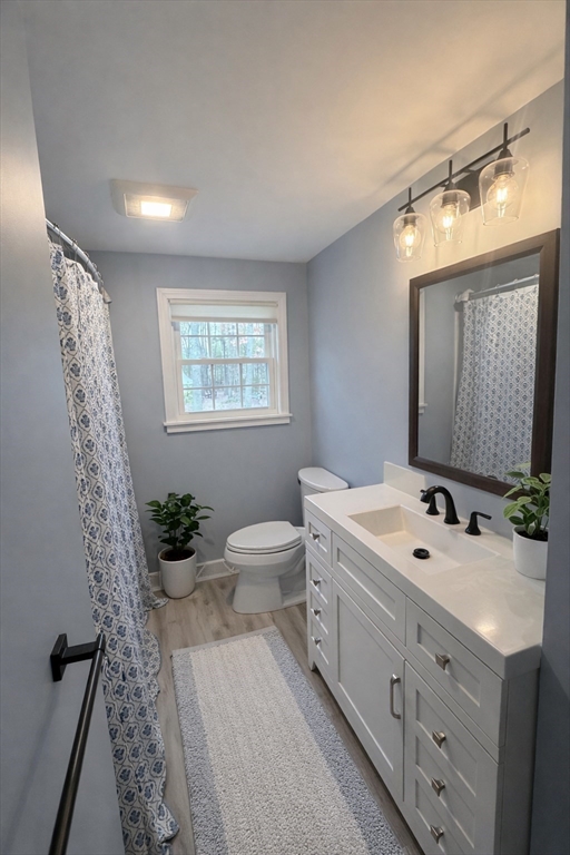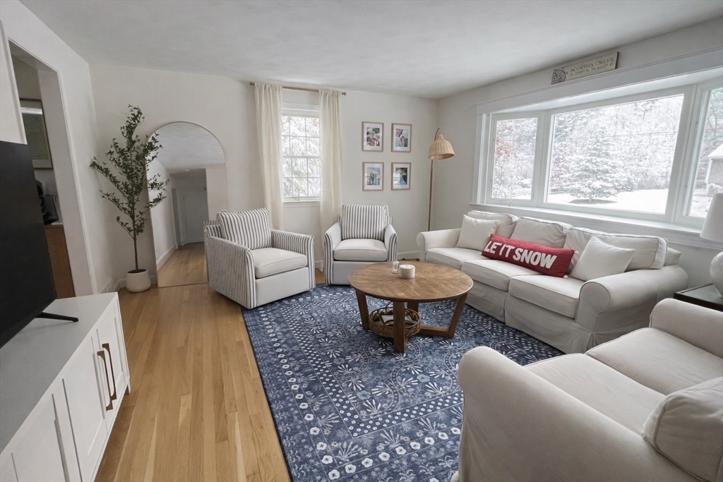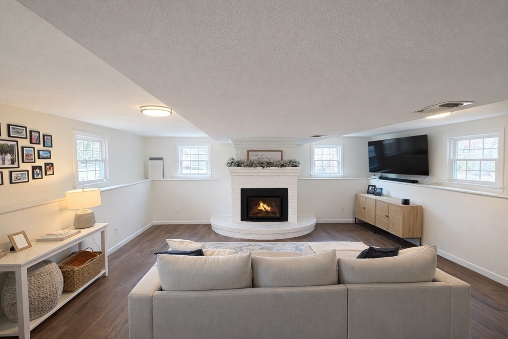 Beautifully updated split-level /raised ranch in Kingston offering 4 bedrooms, 1.5 baths, and two comfortable levels of living in a quiet, family-friendly neighborhood. This sun-filled home enjoys incredible natural light throughout the day and is truly move-in ready with a brand- new roof, fresh interior and exterior paint, and updated siding and trim, plus a charming three-season porch. The home features refinished flooring, new insulation, new electric panel and service, and a brand -new dishwasher and clothes washer. The lower level offers a warm and inviting retreat with a newly finished basement and cozy propane fireplace, ideal for additional living, work-from-home space, or entertaining. Major system upgrades include a brand-new septic system for added peace of mind. Outside, enjoy a massive, pool-ready yard with lush new grass, perfect for kids, pets and outdoor entertaining. Ideally located close to local schools and just 10 minutes to waterfront in Plymouth.