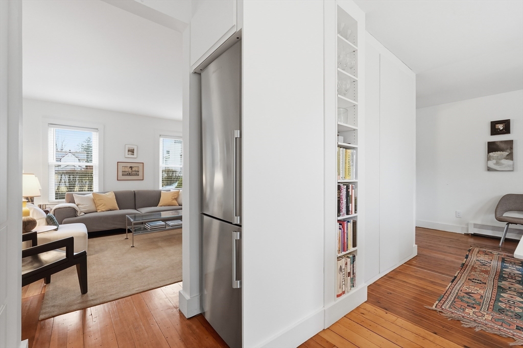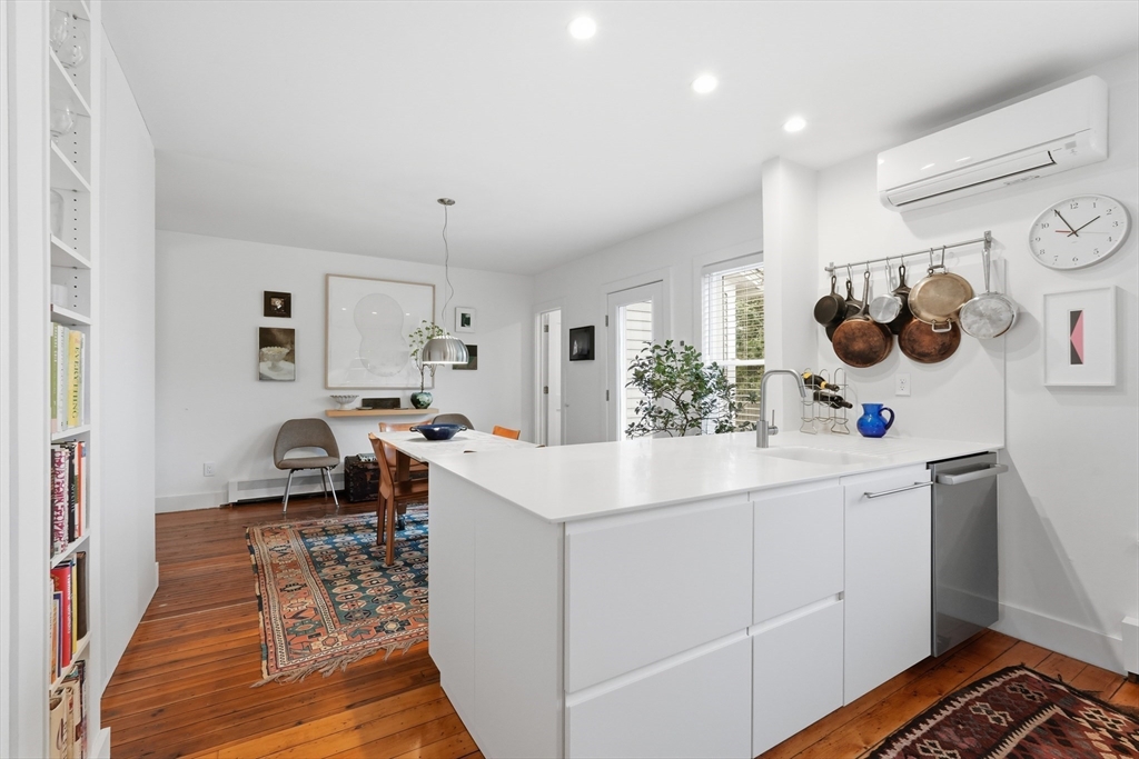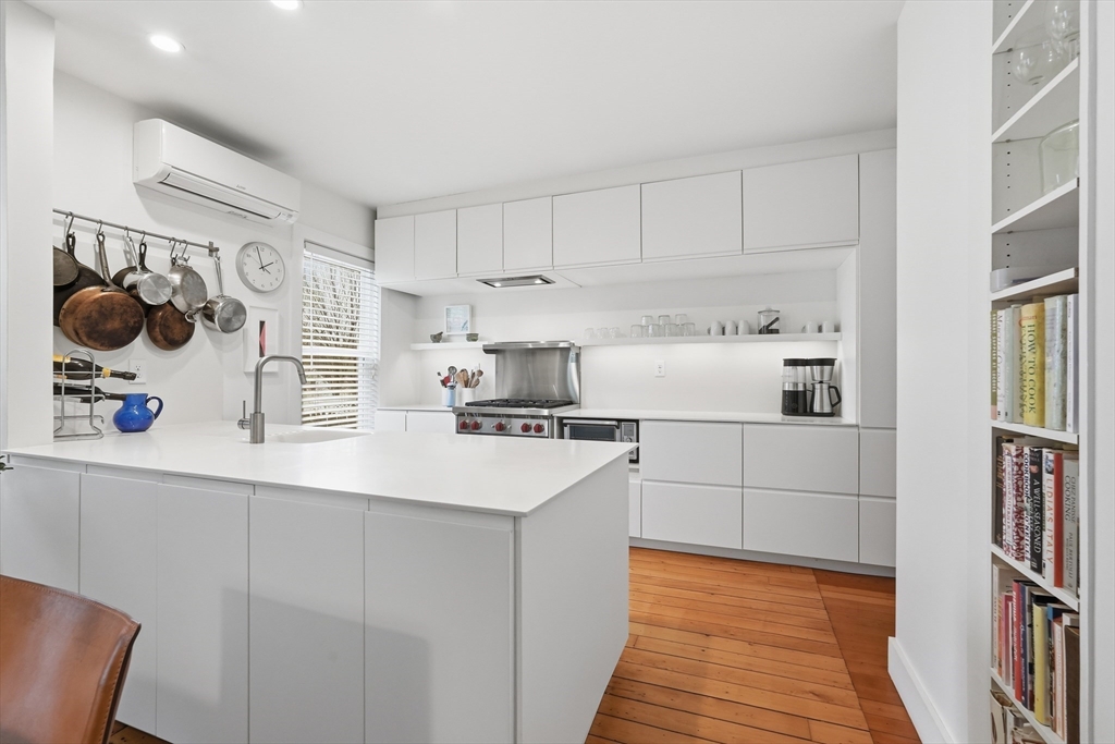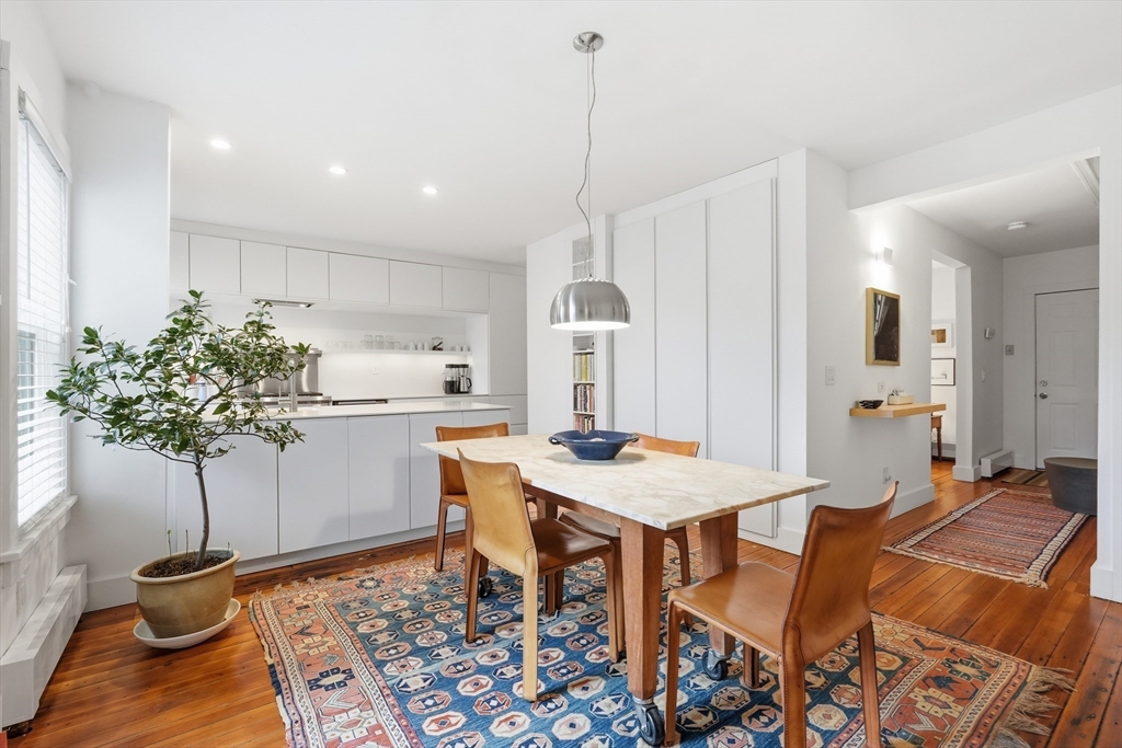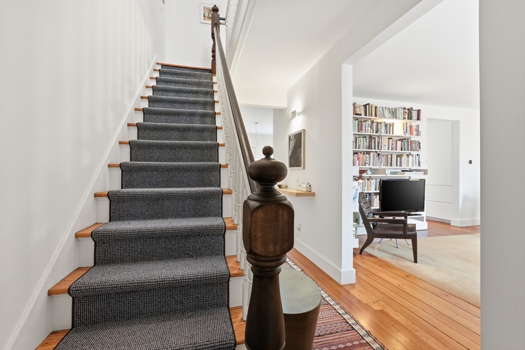 This elegant condo seamlessly incorporates turn of the century details with modern updates and Scandinavian style! Completely renovated in 2017, the gorgeous wood floors flow throughout. The star of the main floor is the open kitchen and dining area. Highlighted with sleek Corian countertops, this chef's kitchen boasts a Wolf stove and European cabinetry providing an abundance of storage. The open floorplan extends into the dining room with stylish lighting and floor to ceiling cabinetry. A perfectly placed powder room rounds out the first floor. Up the gracious staircase you'll find more hardwoods and a nook at the end of the staircase that is a lovely spot for a desk or reading chair. The primary bedroom includes more of the amazing built in closet cabinetry. A 2nd BR and a spa-like BA with floating vanity and large soaking tub complete this floor. Updates include all new windows, ductless minisplits and more. Located just steps from downtown, this one is not to be missed.